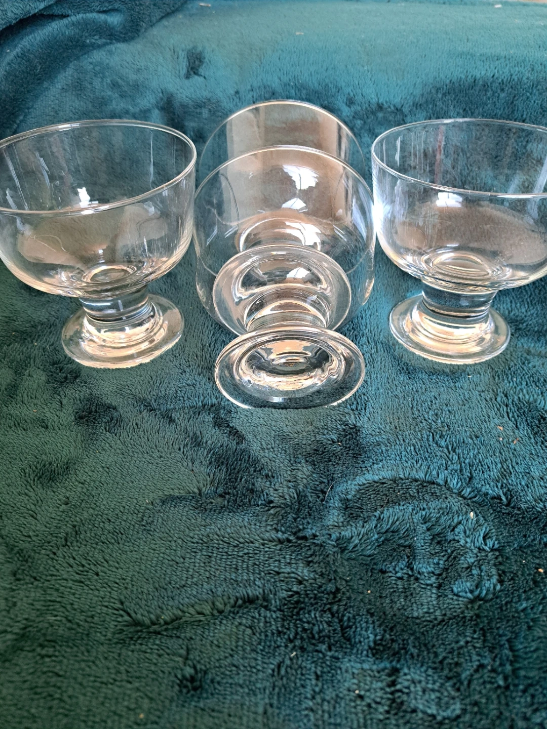 This is a set of eight clear glass dessert cups. The cups are made of glass and come in two different styles, some with fluted edges. They're perfect for serving ice cream or other sweet treats!