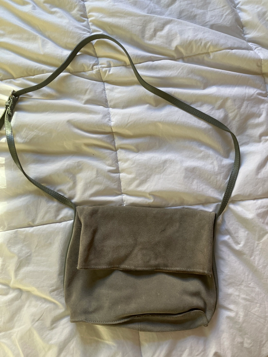 Sage Green Suede Crossbody Bag