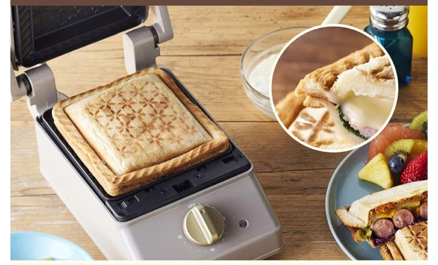 This BRUNO compact hot plate makes delicious sandwiches with a unique patterned crust. Its non-stick plates are easy to clean. This appliance is perfect for quick breakfasts or snacks!