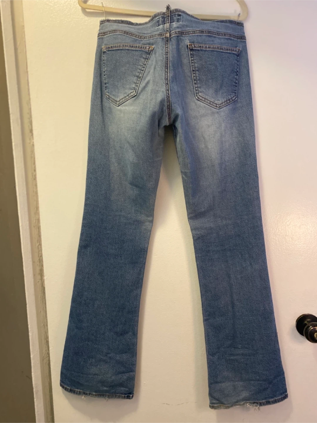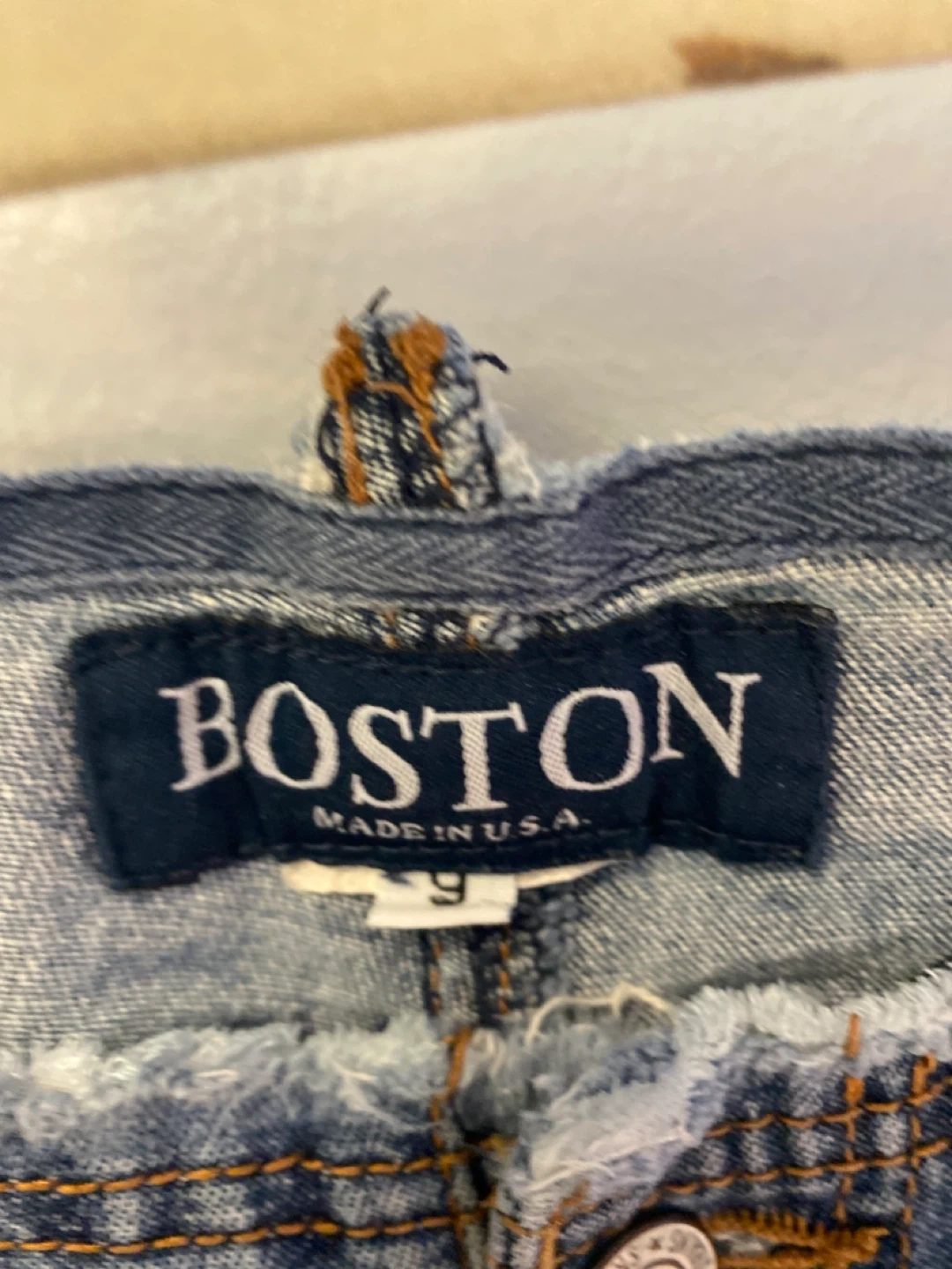 Boston brand women's blue denim jeans. Bootcut style with a faded wash and distressed details. Made in the U.S.A. Size 6. follow me @casa_s_decor ♥️🙏🏻