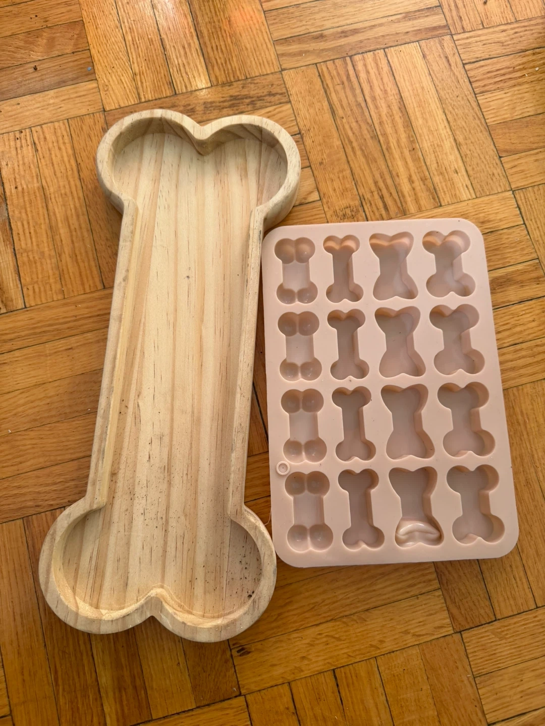 Wooden Bone Shaped Tray and Silicone Bone Mold