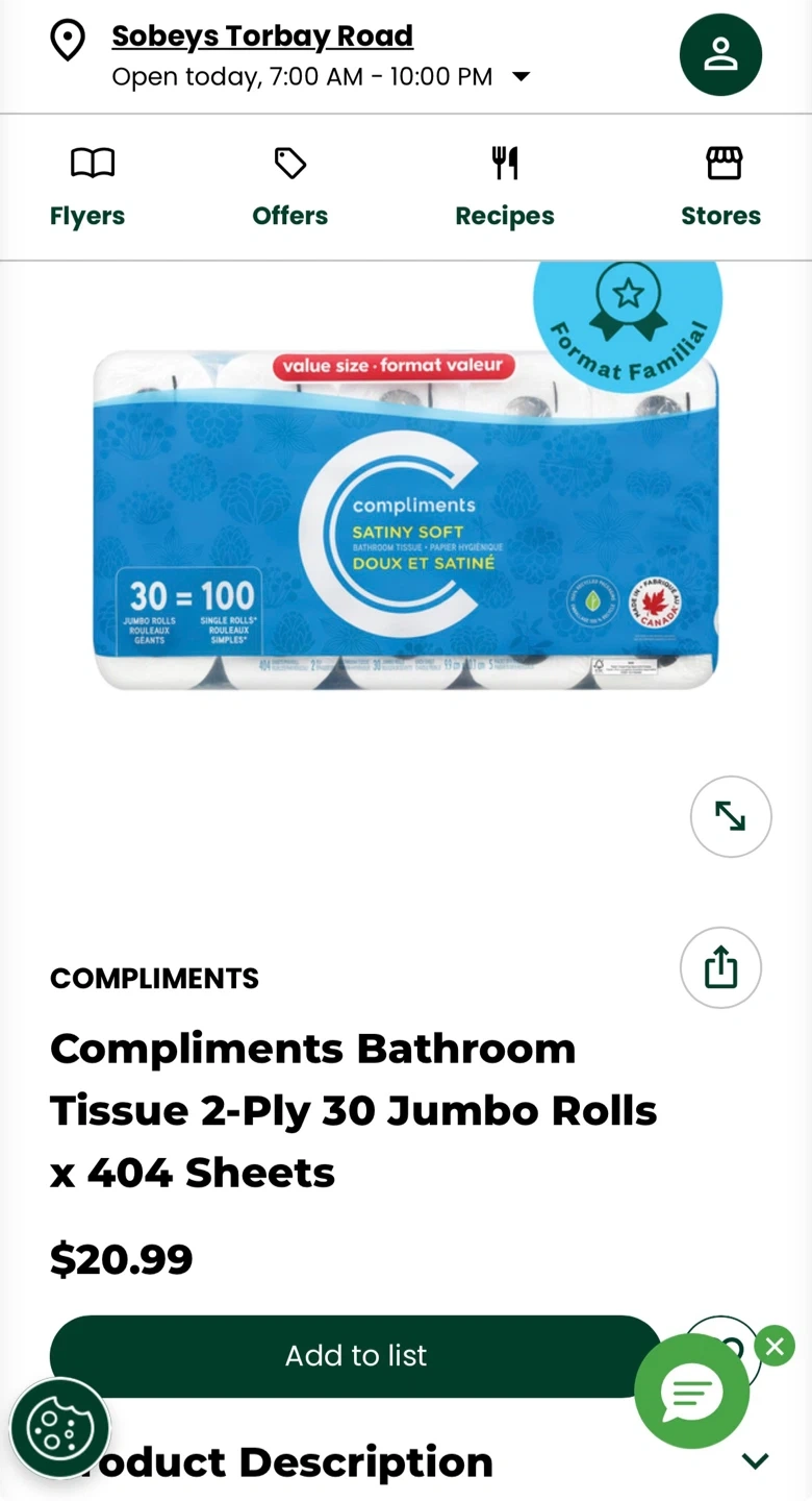 • Toilet Paper: * One large, FULL pack.