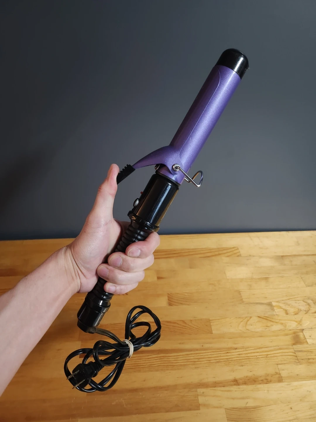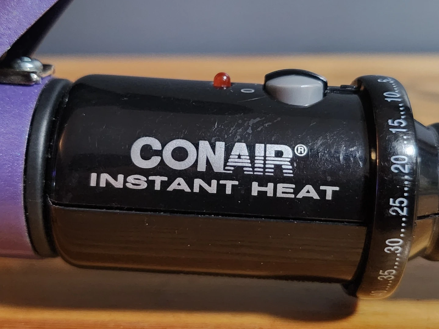 Conair Instant Heat curling iron with a barrel size of 1 1/4". these models are commonly available in purple and black color scheme.