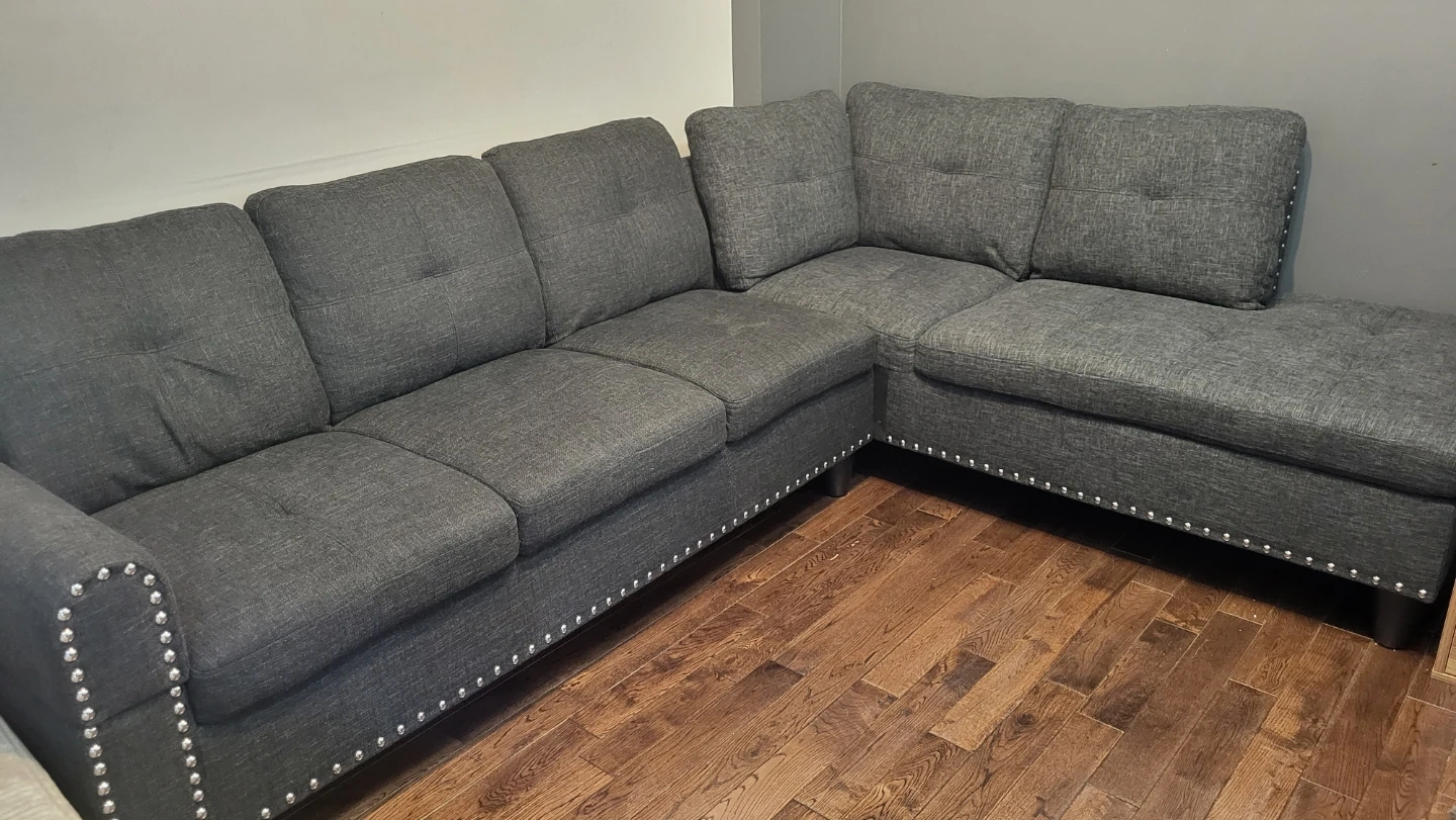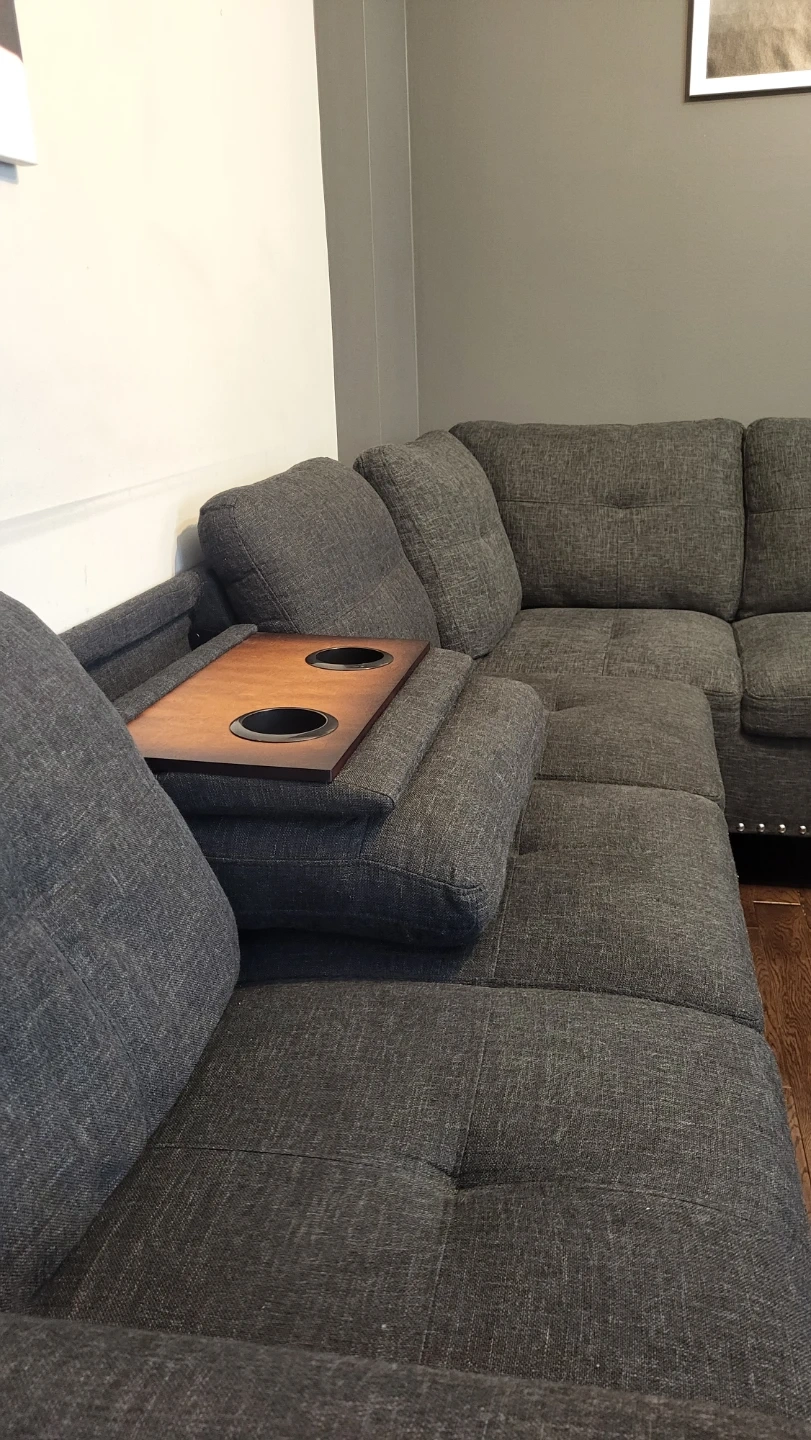 Grey Sectional Sofa with Built-in Cupholders
