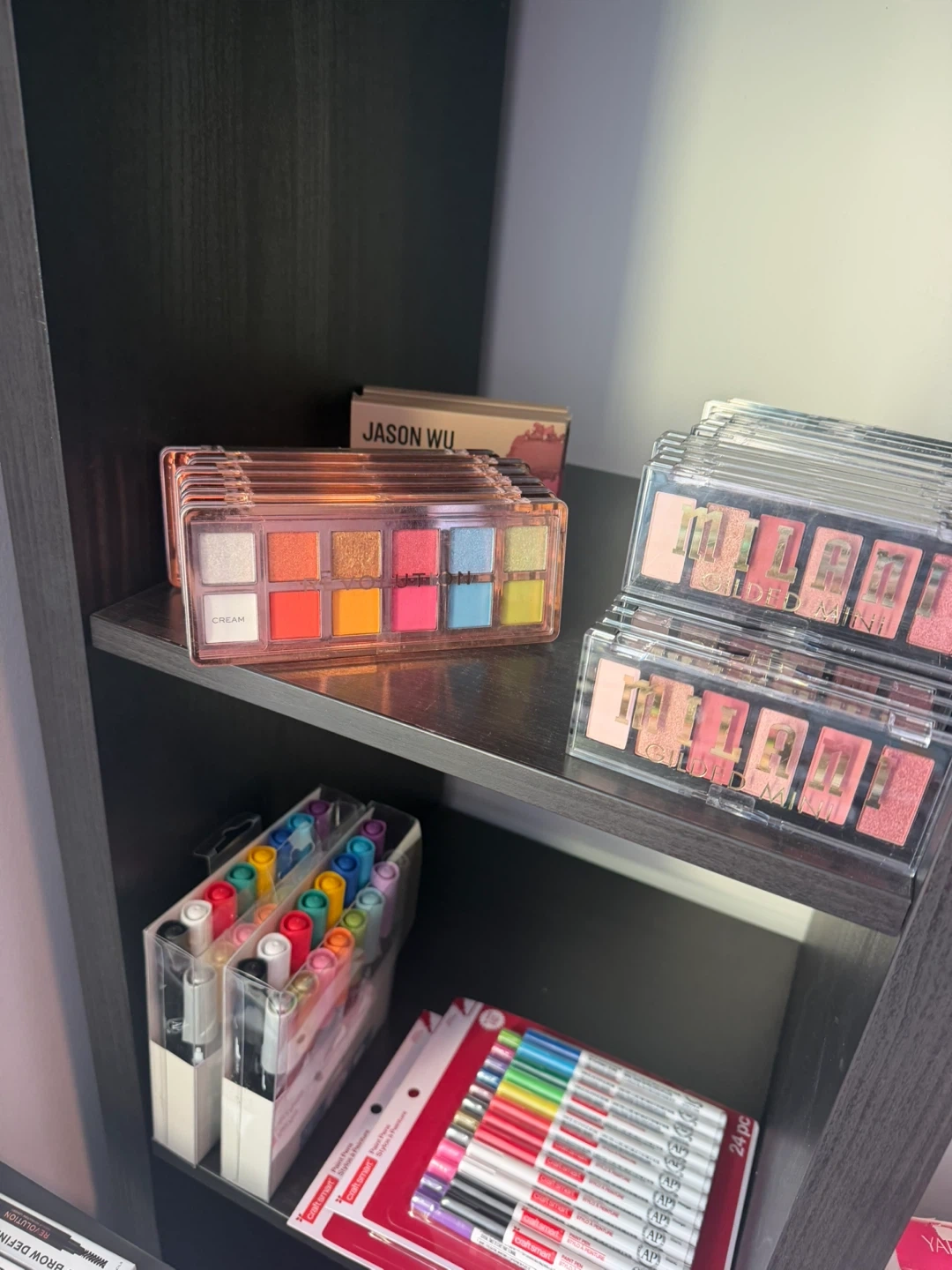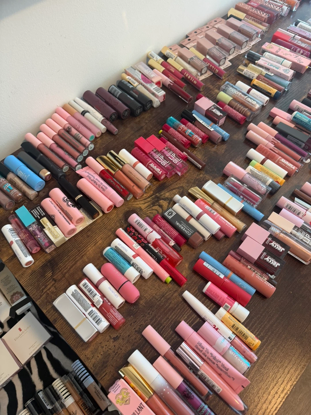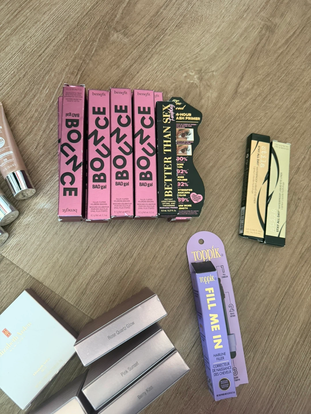 Assorted skincare and makeup items. Includes Lip Tones, EyeLifts Max, and Glow Liquid. Also features Winky Lux products. Great for makeup enthusiasts!