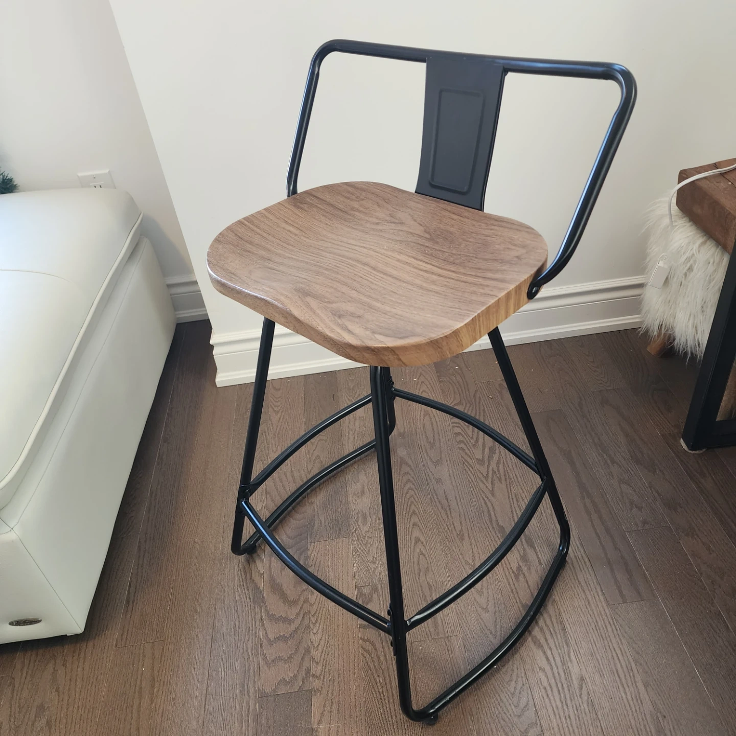 This is a single bar stool with a wood seat and black metal frame. It's perfect for a kitchen island or counter height table. Some assembly may be required.