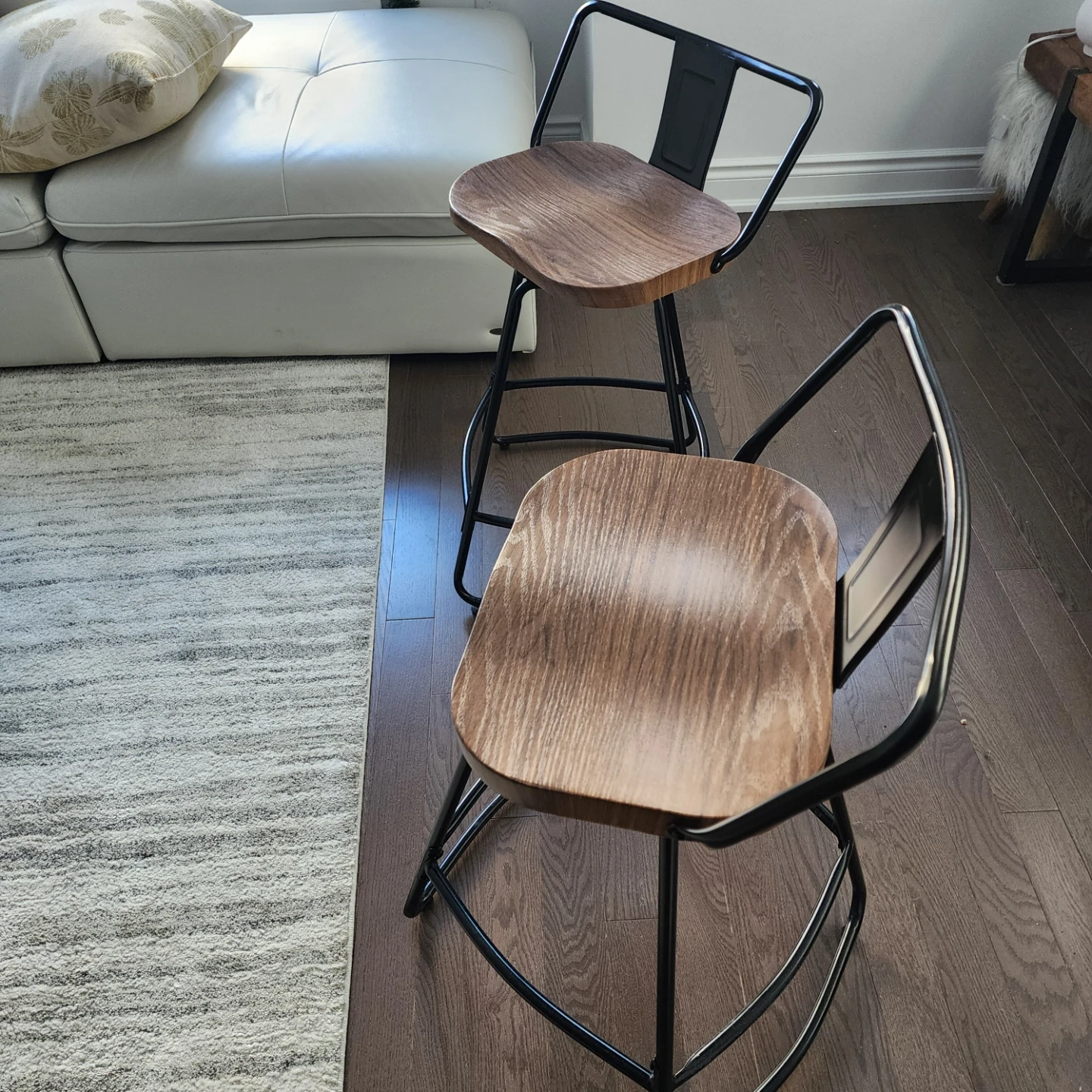 A Pair of Wood Seat Bar Stool