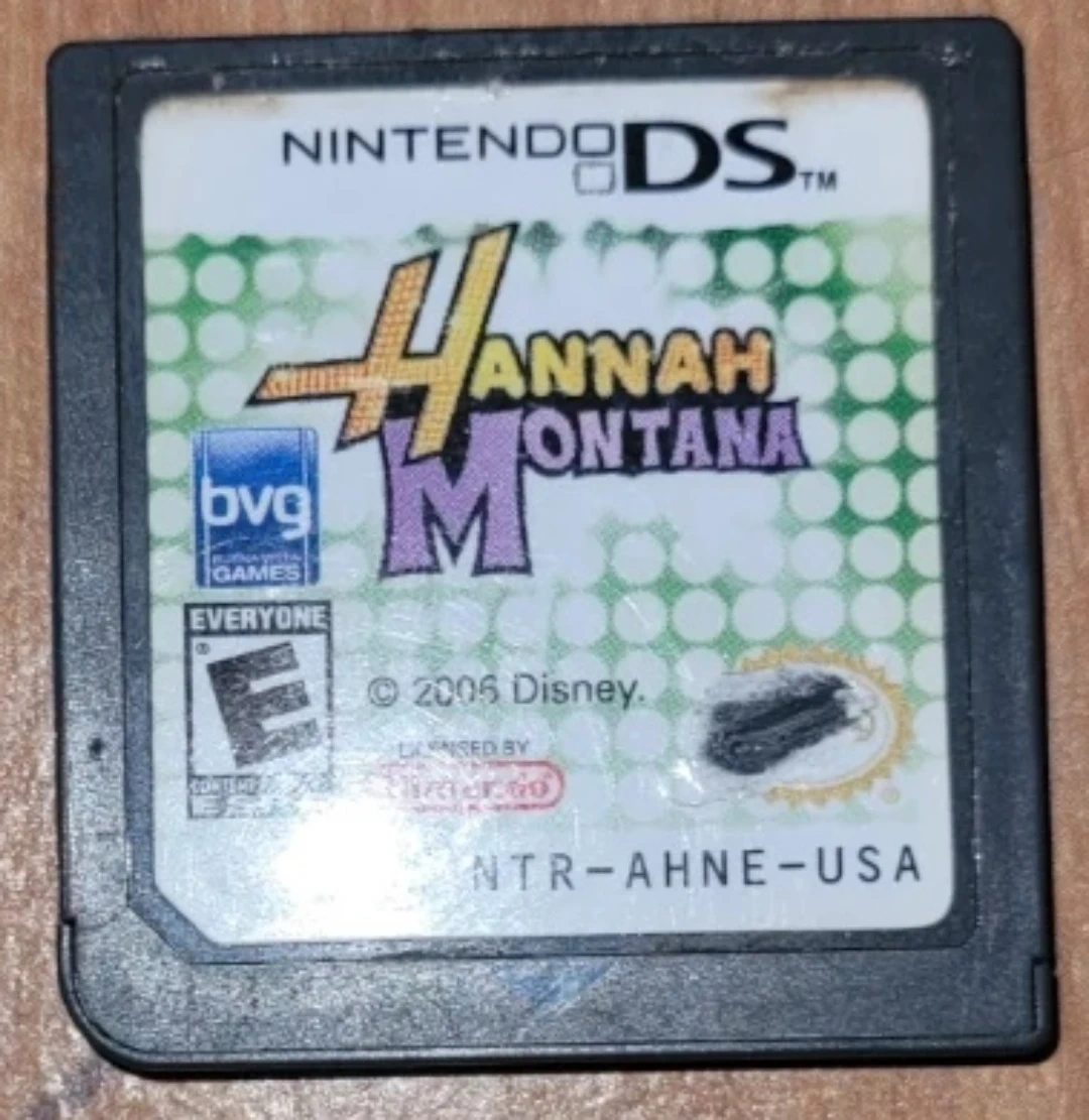 This is a Nintendo DS game cartridge featuring Hannah Montana. It was released in 2005 by Disney. The game is rated E for Everyone.