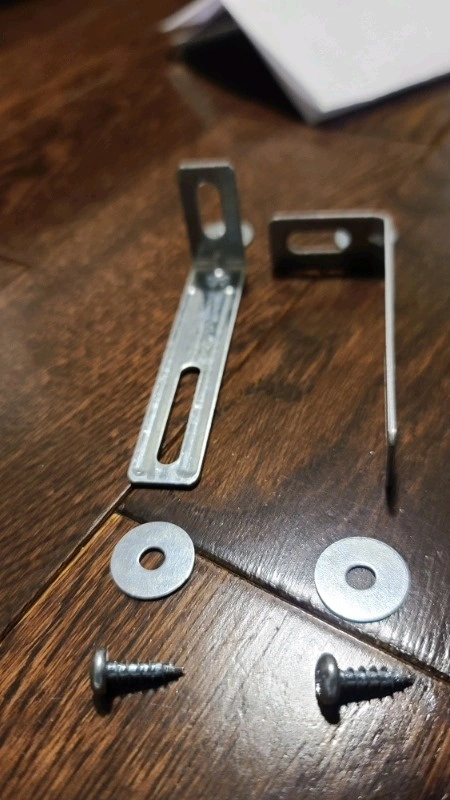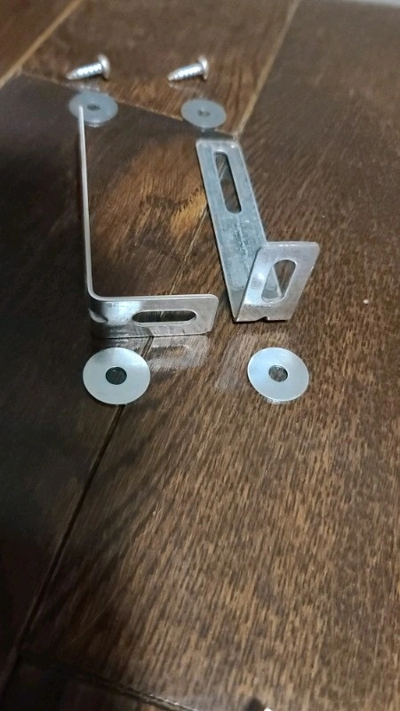 Selling 2 per dollar. Each set comes with 2 brackets, 2 wood screws for mounting into furniture, and 4 washers. Please note you will need to purchase your own screw anchors and corresponding screws to attach to the wall. I have plenty available, so please let me know how many sets you need. It's recommended to use two brackets per piece of furniture for stability. Great for baby proofing your home. Check out my other ads to see if you can bundle and save money!