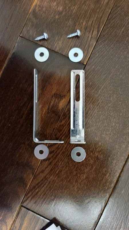 Selling 2 per dollar. Each set comes with 2 brackets, 2 wood screws for mounting into furniture, and 4 washers. Please note you will need to purchase your own screw anchors and corresponding screws to attach to the wall. I have plenty available, so please let me know how many sets you need. It's recommended to use two brackets per piece of furniture for stability. Great for baby proofing your home. Check out my other ads to see if you can bundle and save money!