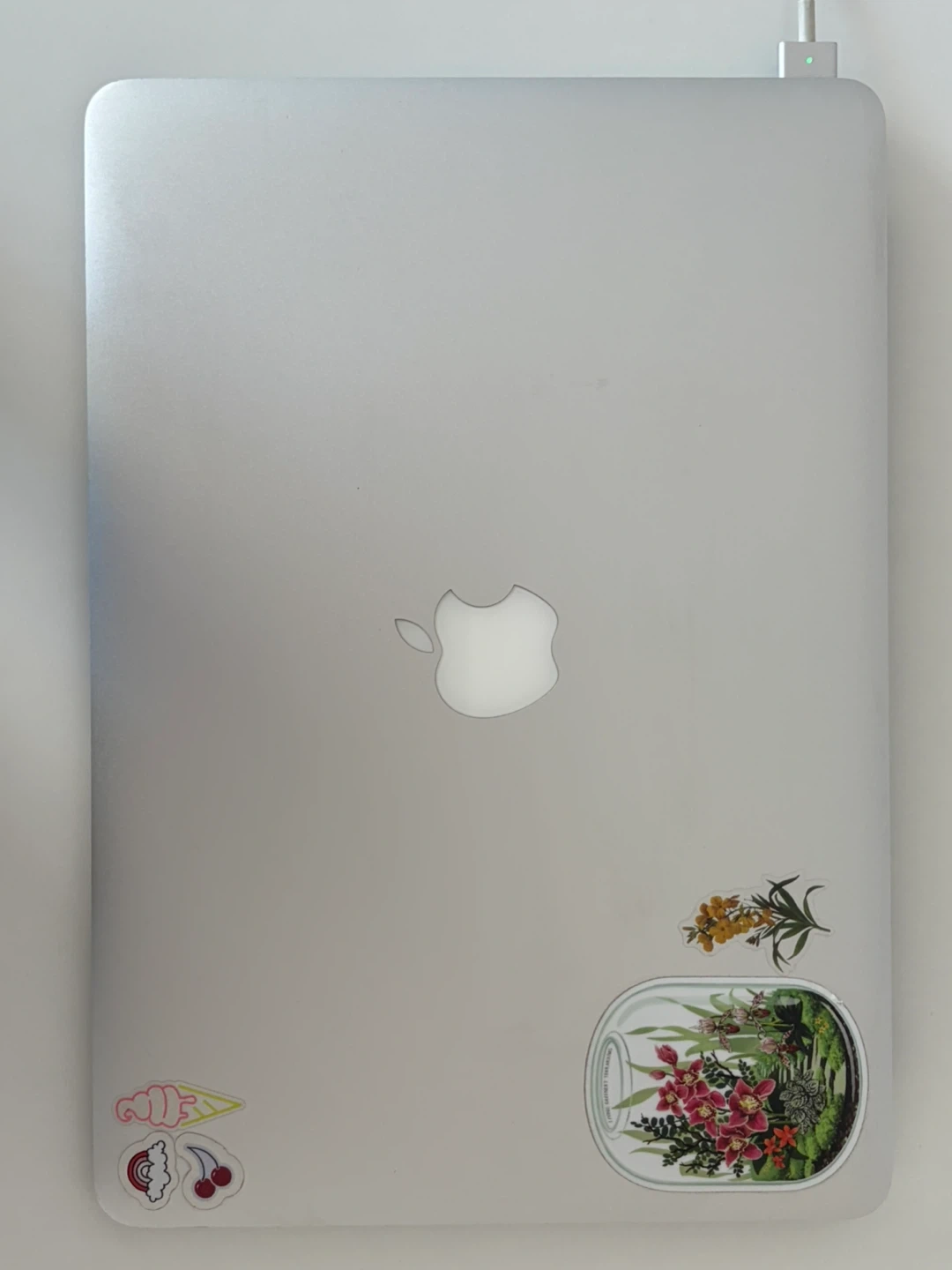 Macbook Air (13-inch, early 2014). I cannot remove the stickers without leaving a bunch of glue residue. Sorry.