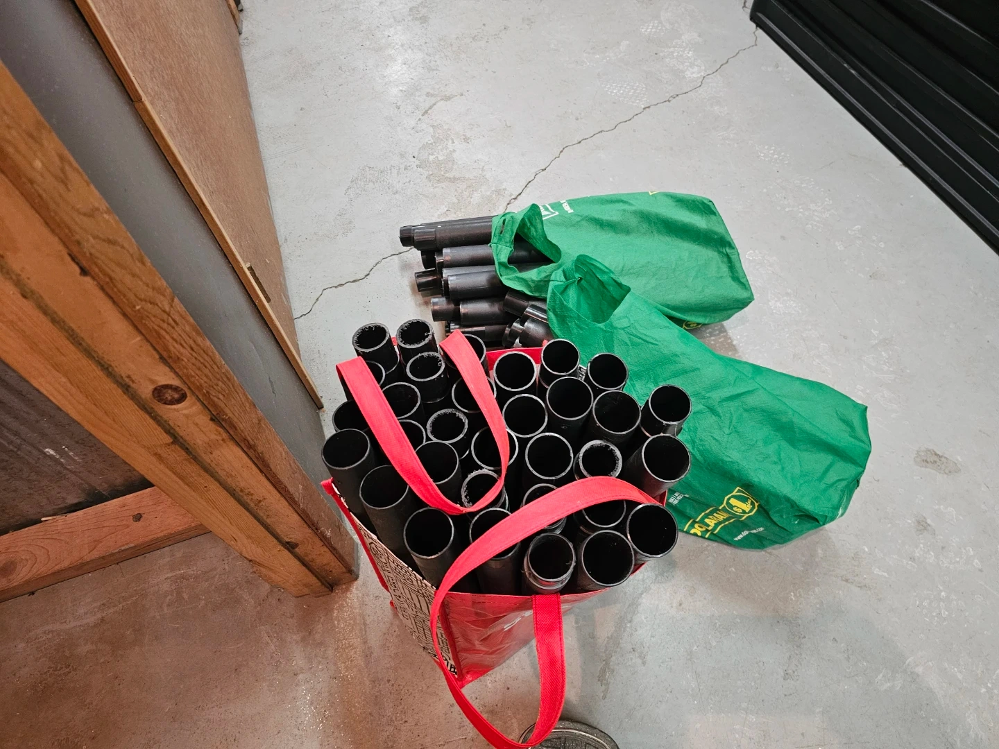 This is a black metal wire shelving unit, perfect for organizing your garage or storage space. It's made of durable metal wire and includes multiple shelves and support poles for assembly.
