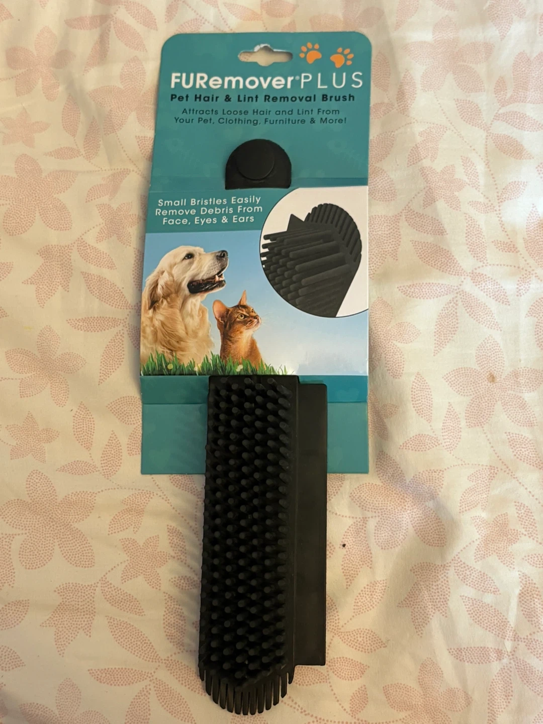 This FURemover PLUS pet hair and lint removal brush attracts loose hair and lint from your pet, clothing, and furniture. Its small bristles easily remove debris from sensitive areas like faces, eyes, and ears. It's a handy tool for keeping your home and belongings tidy!