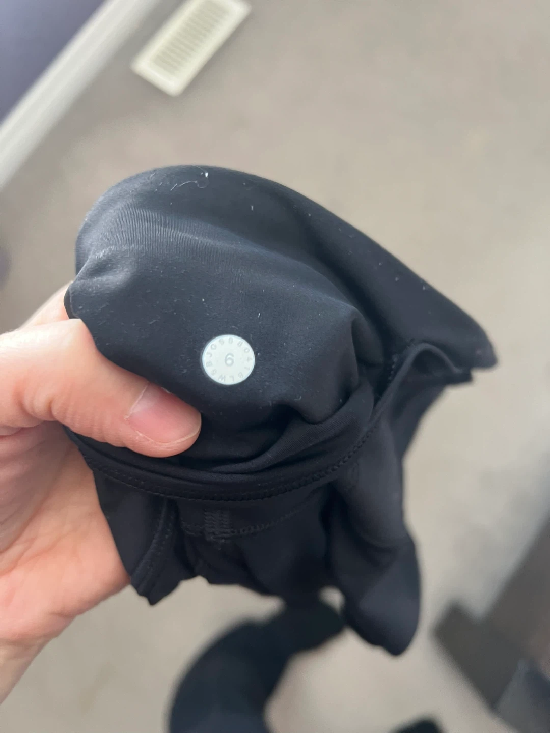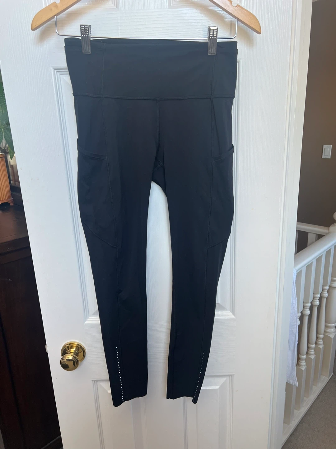 Lululemon black leggings. It's a size 6 with side pockets. Perfect for workouts or everyday wear!