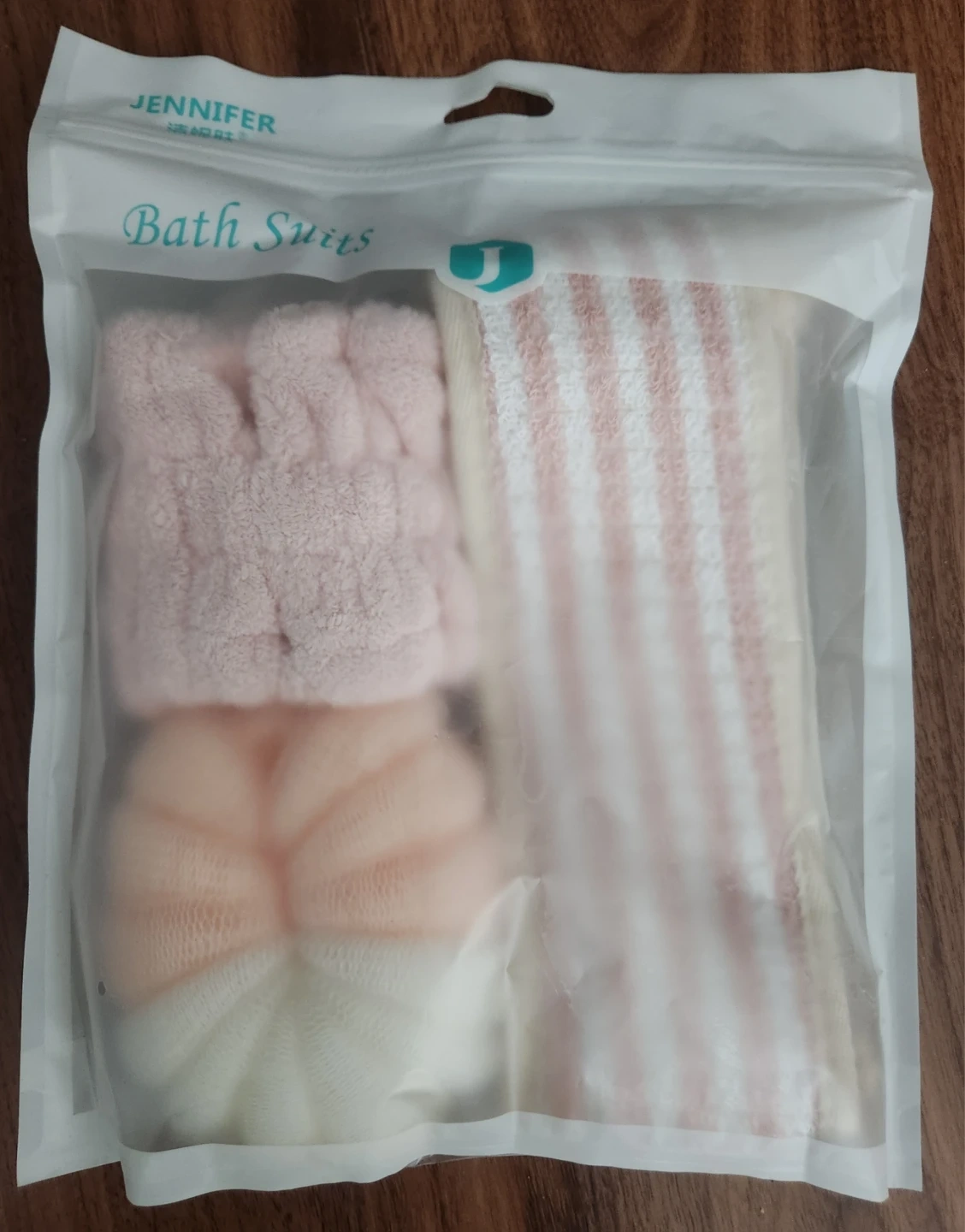 This Jennifer combination set includes bath items for a refreshing shower experience. It's made from high-grade material for comfort. The set contains items designed to help with cleansing and exfoliation.