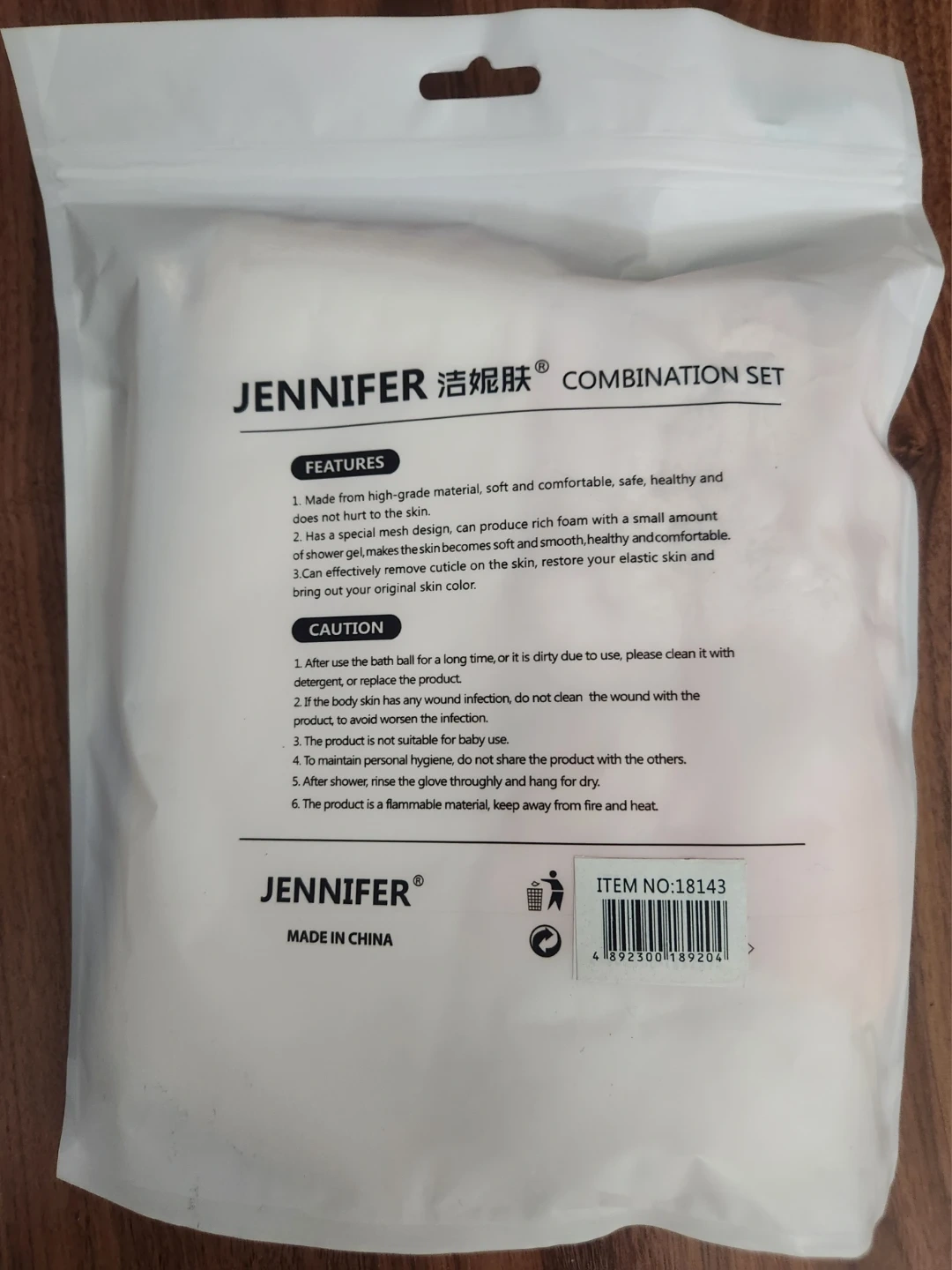 This Jennifer combination set includes bath items for a refreshing shower experience. It's made from high-grade material for comfort. The set contains items designed to help with cleansing and exfoliation.