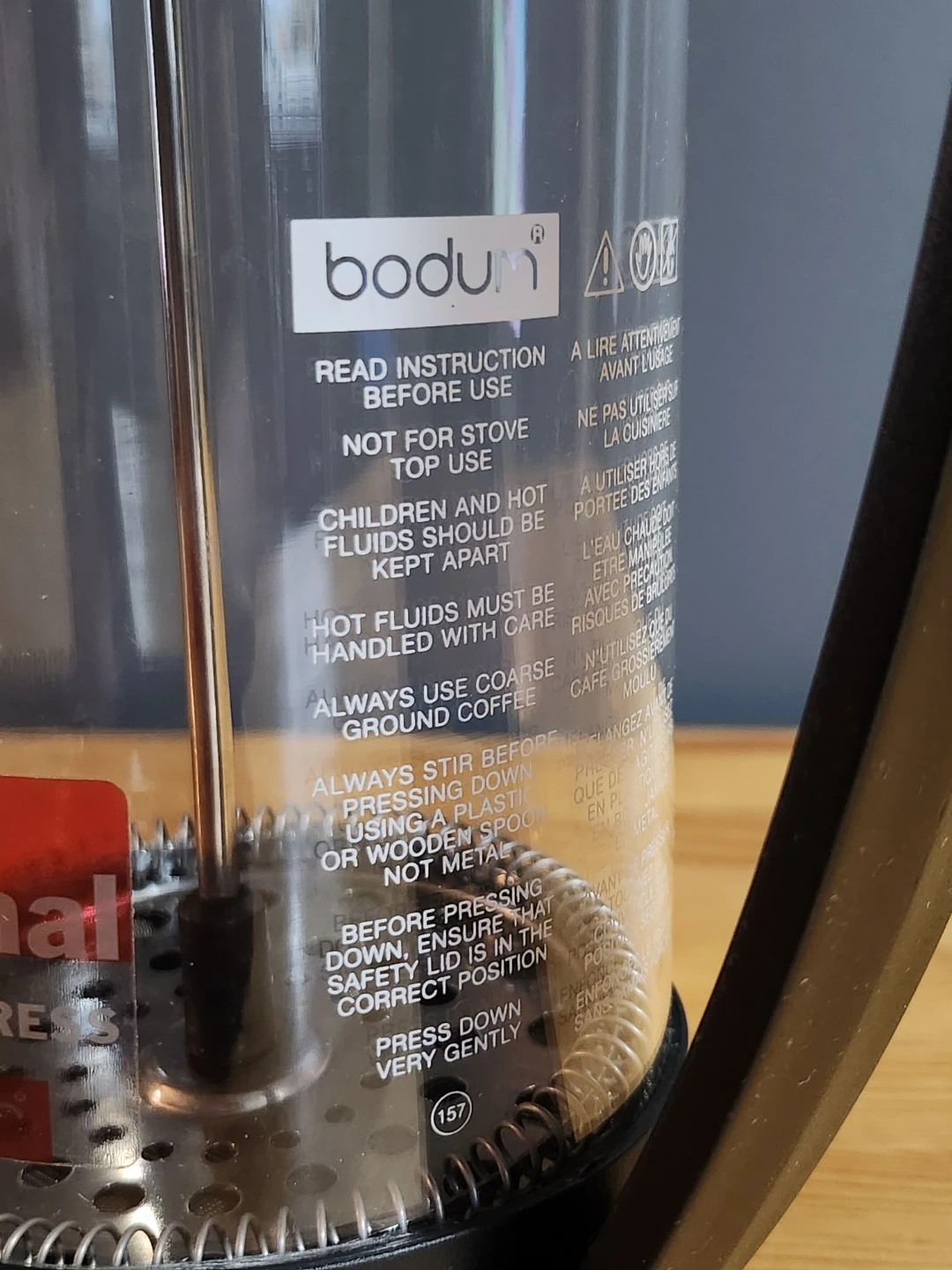 Bodum Brazil French Press coffee maker. It is an iconic and affordable French press model that has been produced since the 1980s.