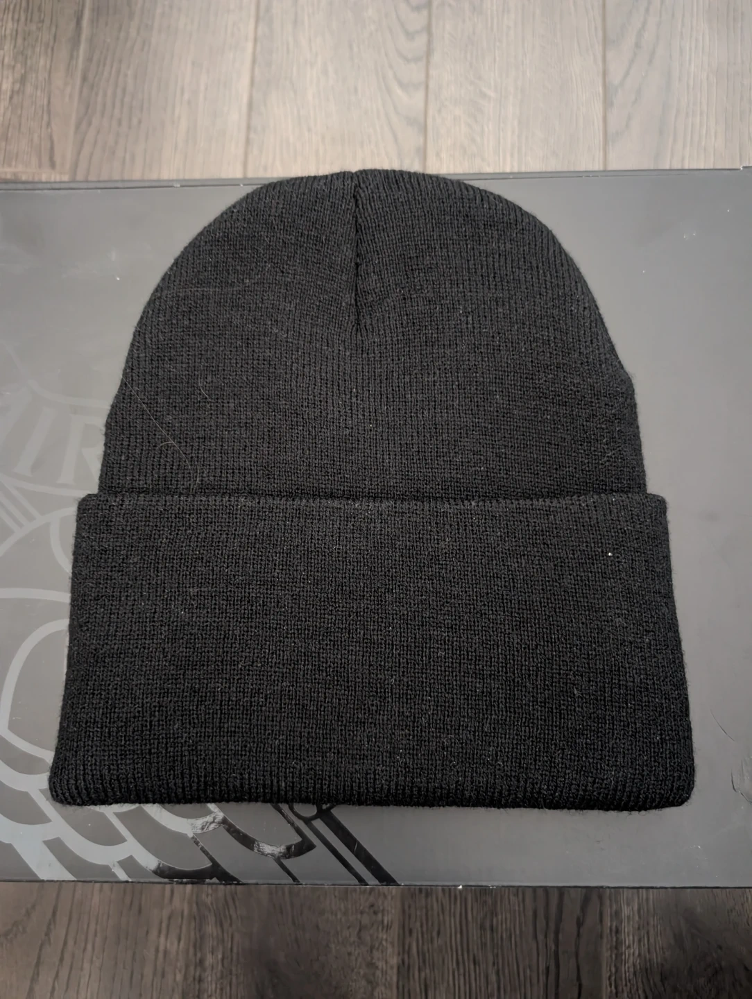 This is a Carhartt knit beanie in black. It's made with a durable acrylic material. The classic cuffed design offers extra warmth. This beanie is a go-to for staying warm on chilly days!