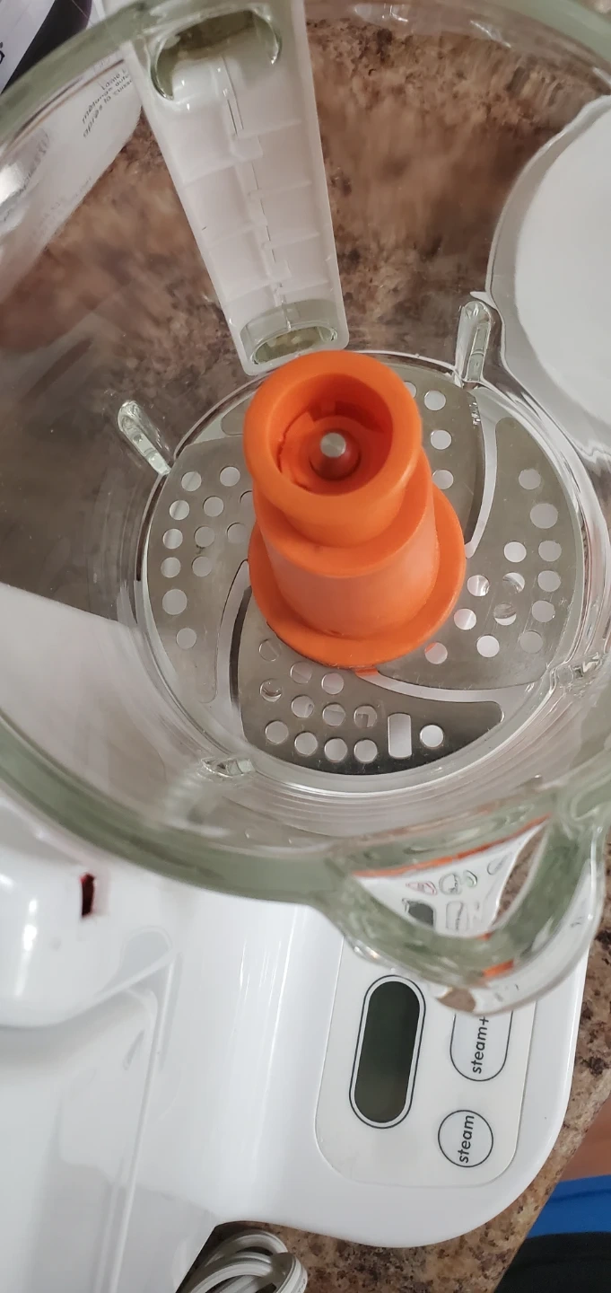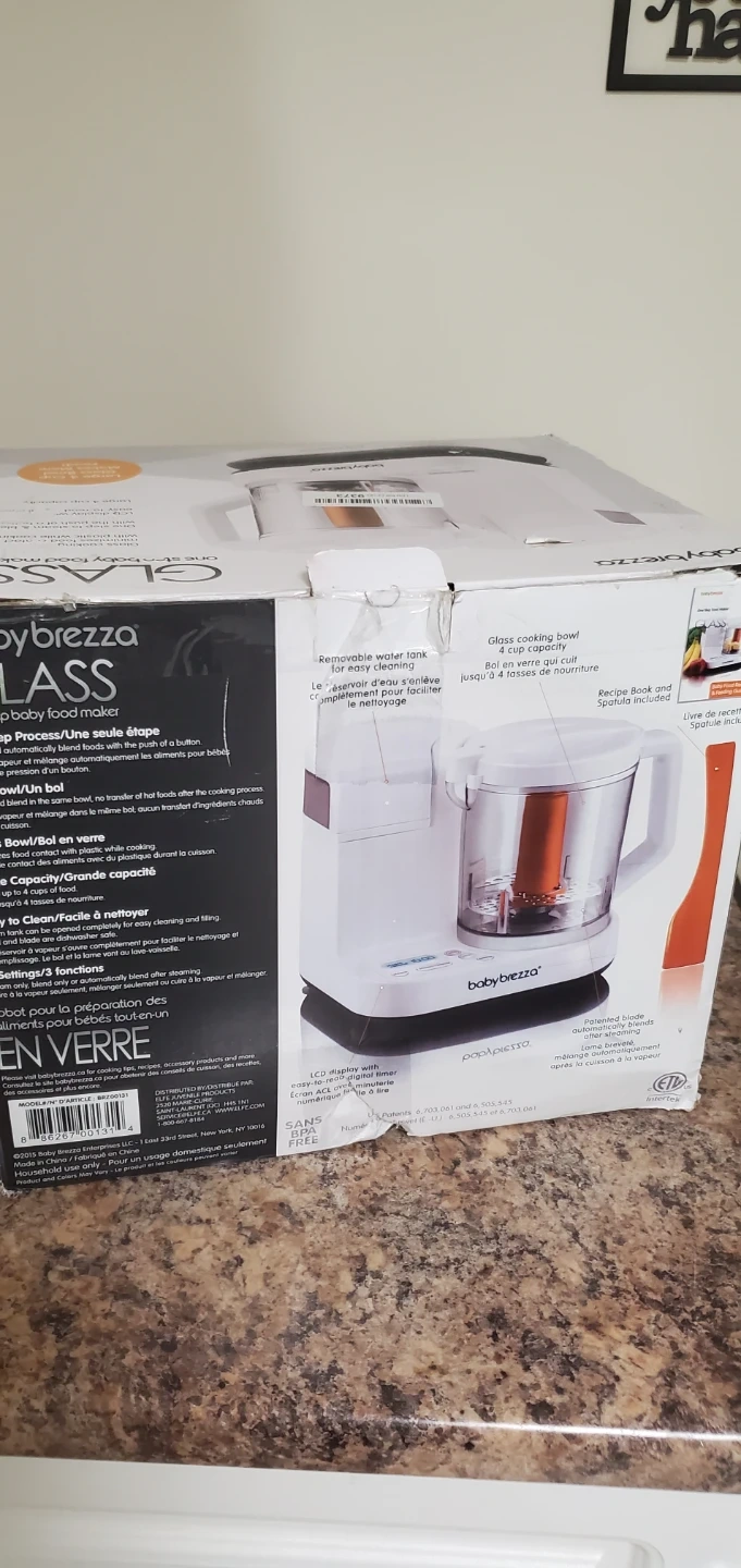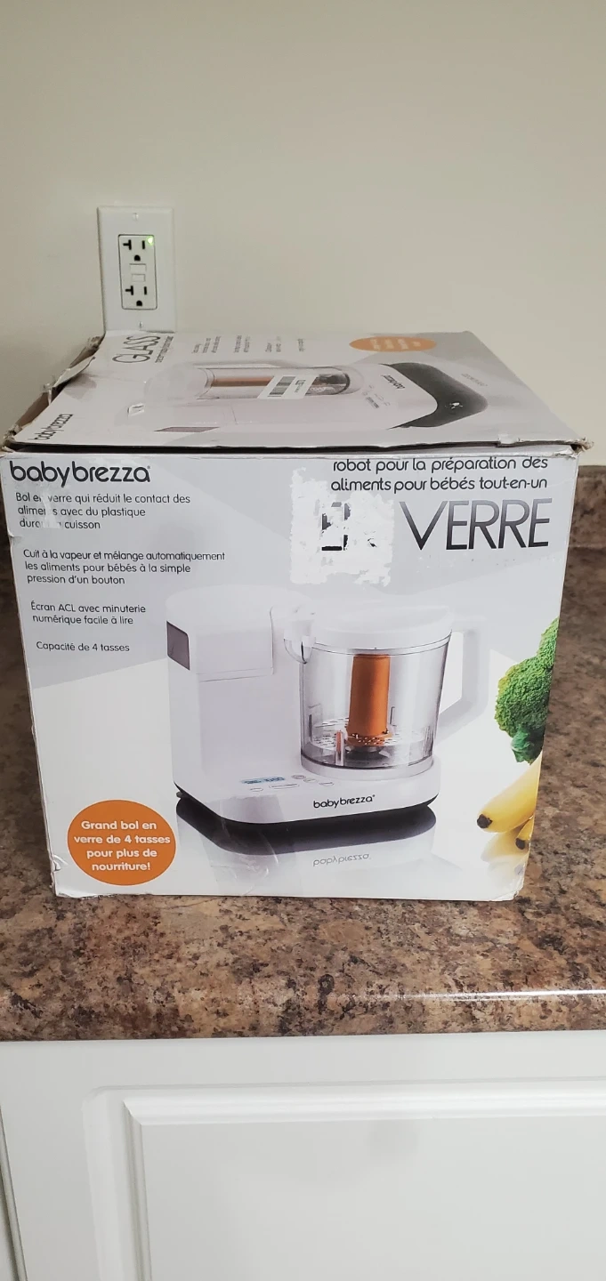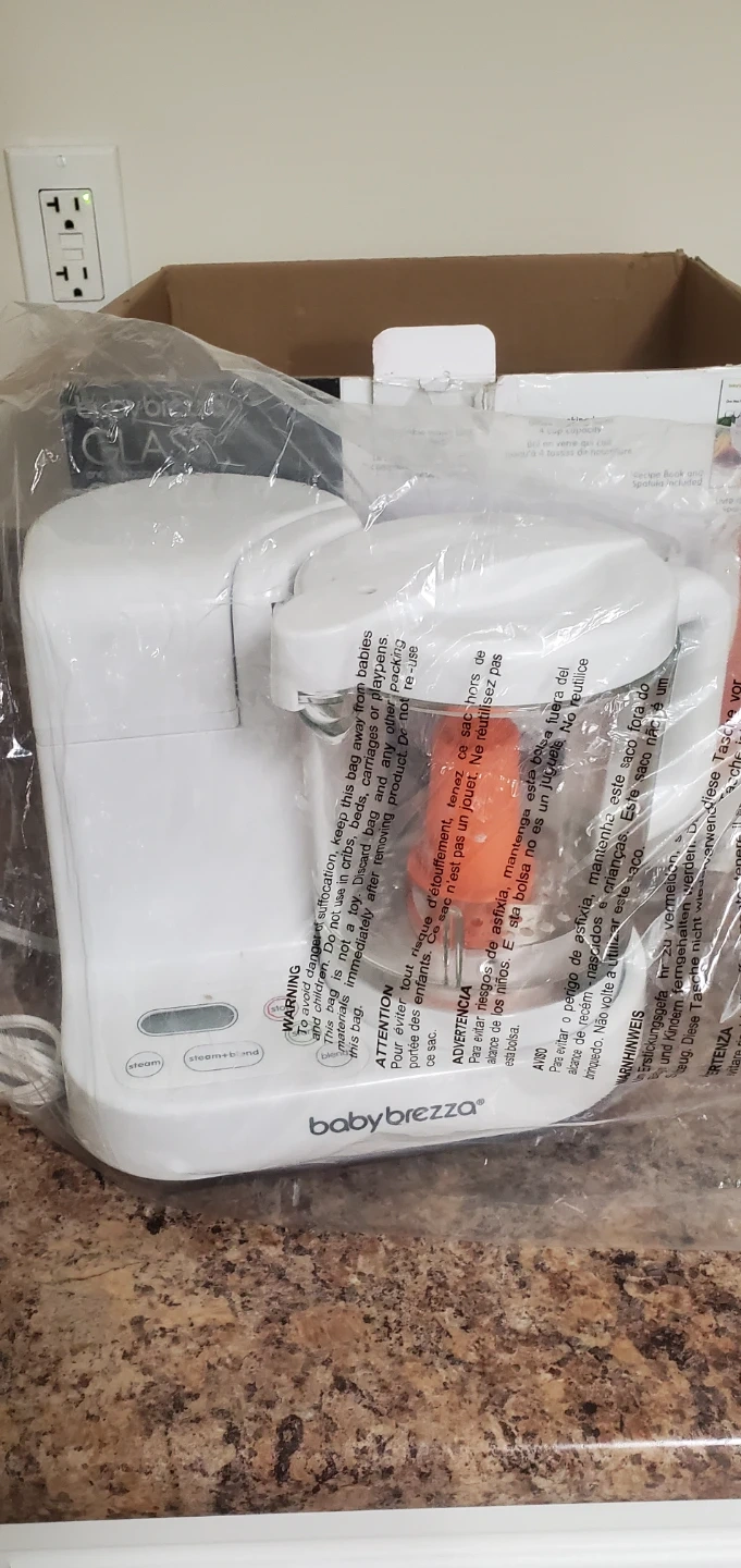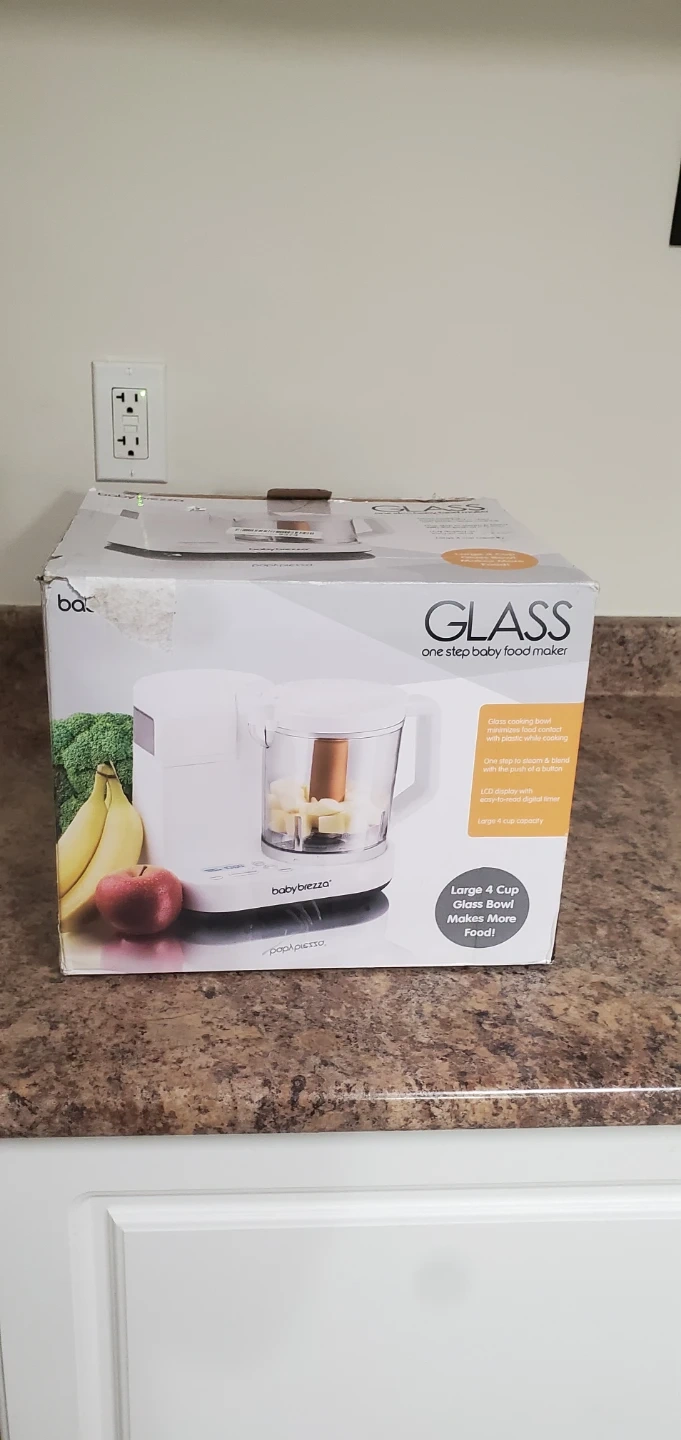 This Baby Brezza GLASS food maker steams and blends baby food in one step. It features a glass bowl and a large 4-cup capacity. This appliance is great for preparing homemade meals for your little one.