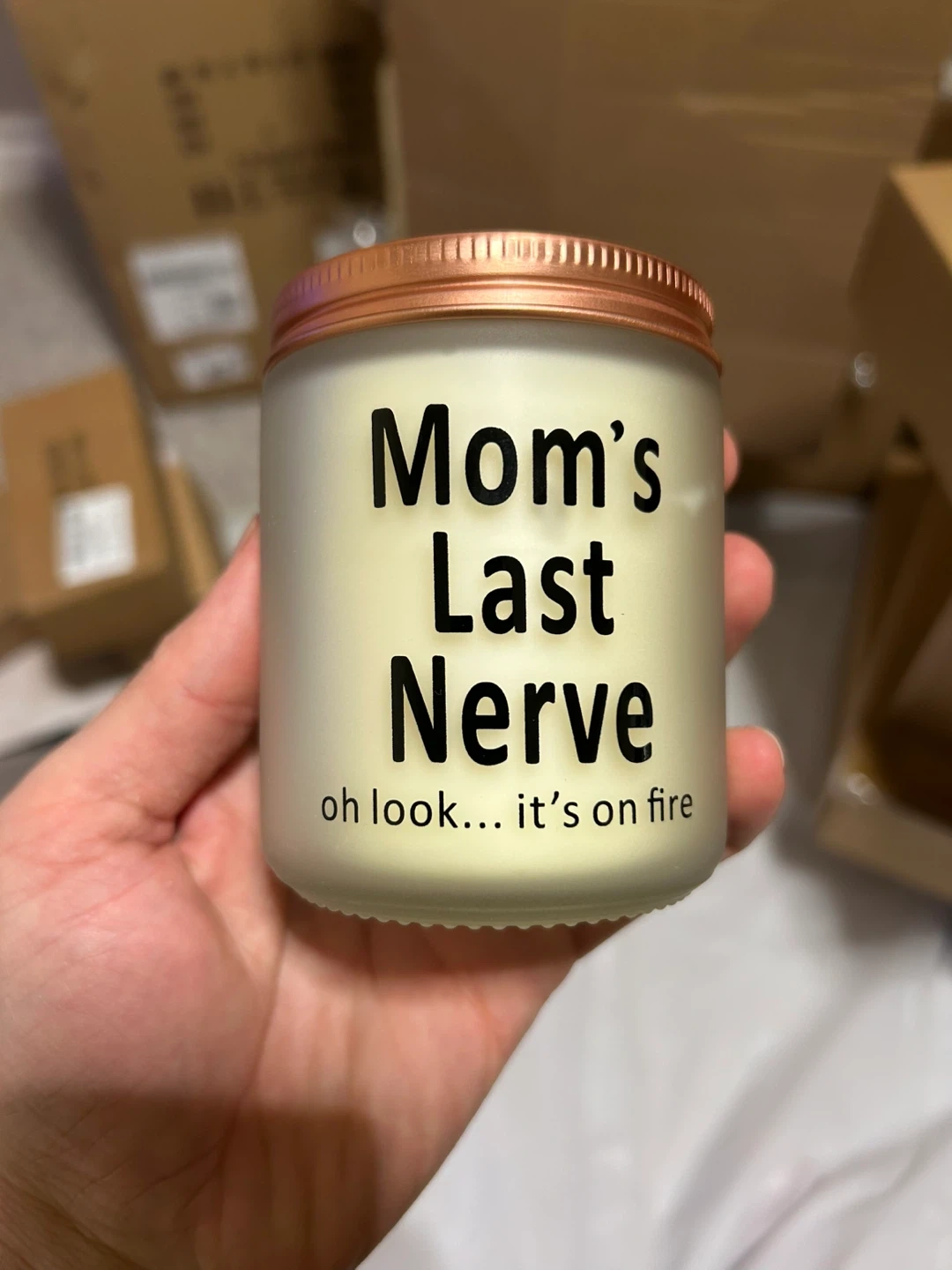 This Udikfo Wellness scented candle is labelled 'Mom's Last Nerve, oh look... it's on fire'. It's made with natural soy wax. This candle is 7oz and would make a humorous gift for any mom!