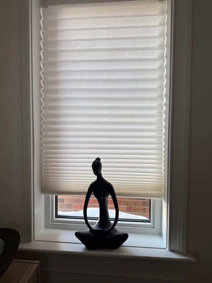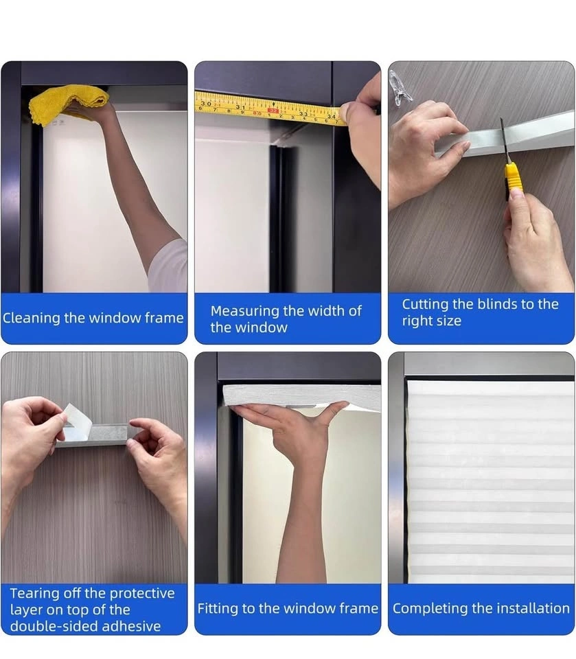 Pack of 3 new light filtering pleated blinds, 48" x 72". Can be cut to size or used with clips. Stick-on.
