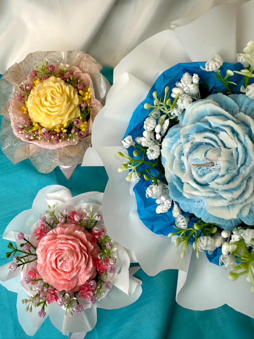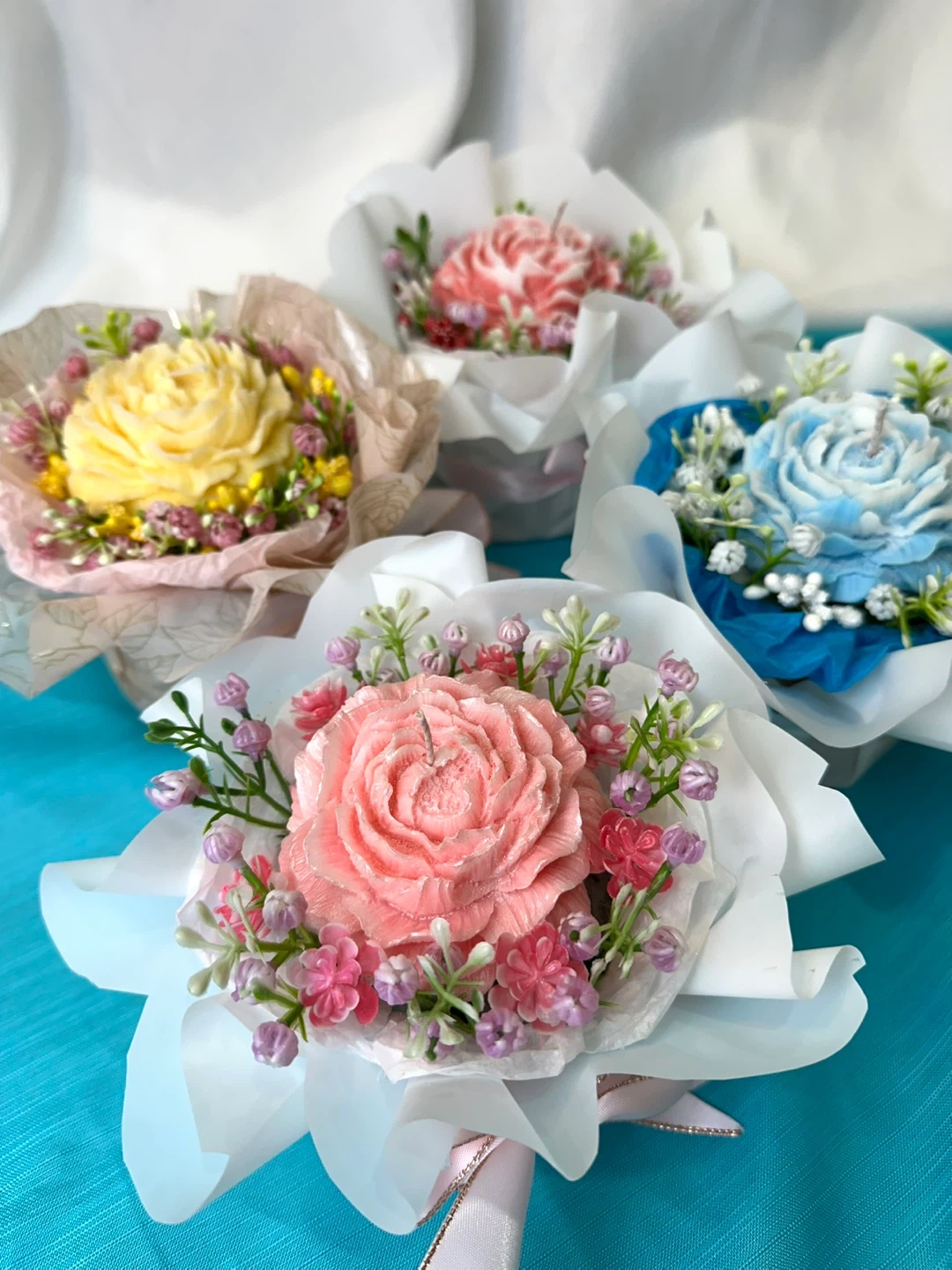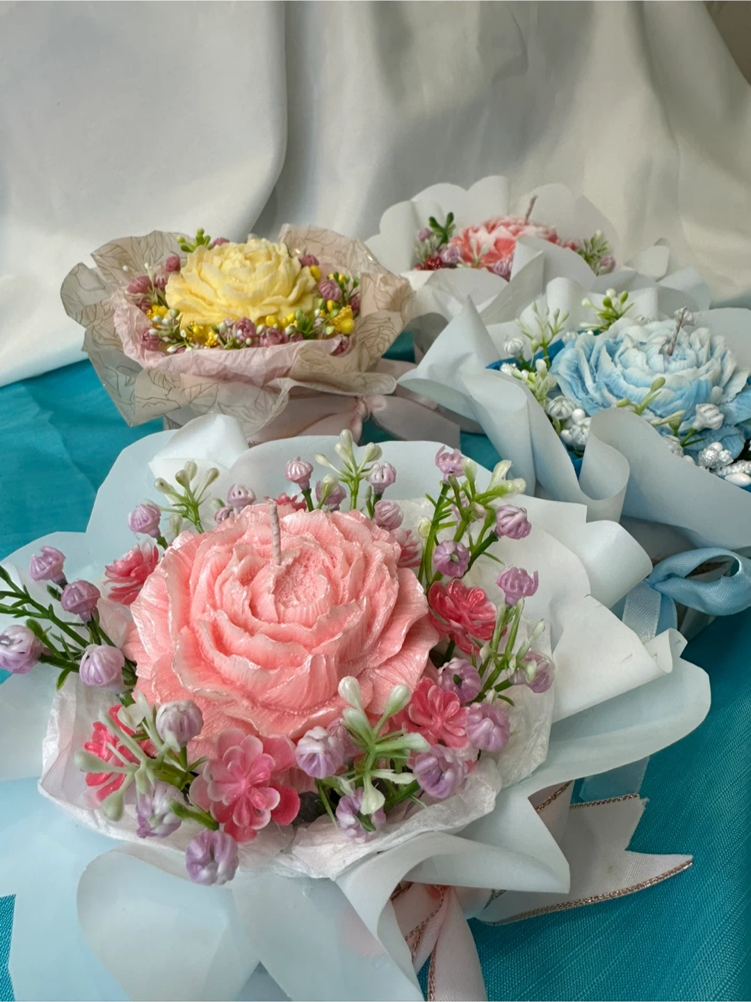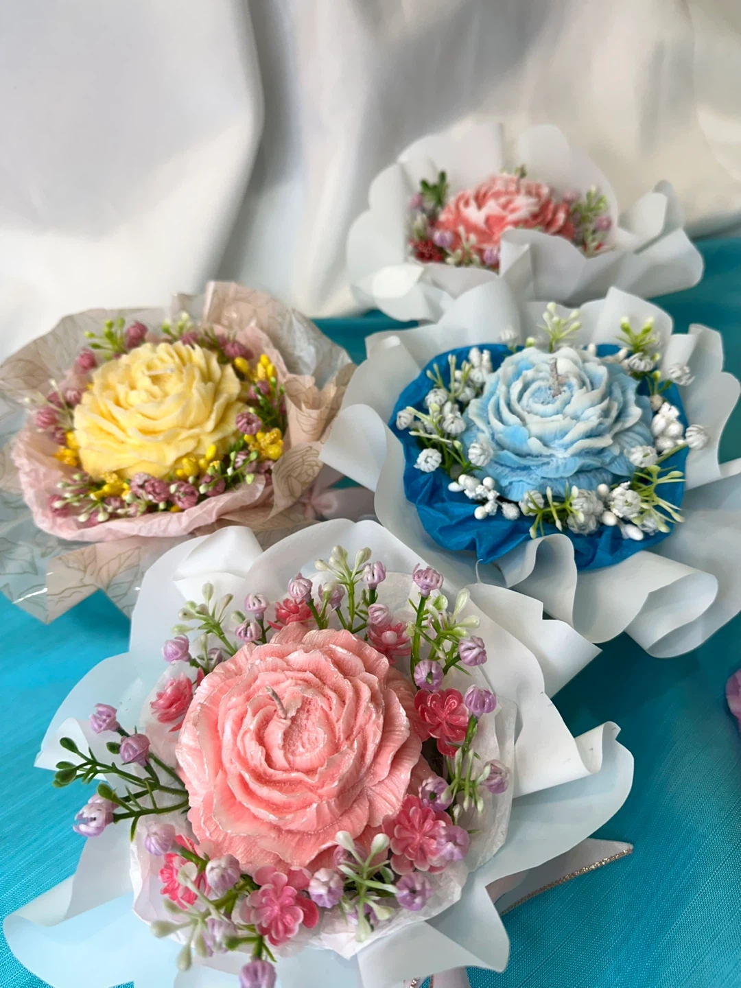 A charming mini-bouquet of decorative candles shaped like flowers. The perfect complimentary gift, pleasing to the eye and creating a cozy atmosphere.