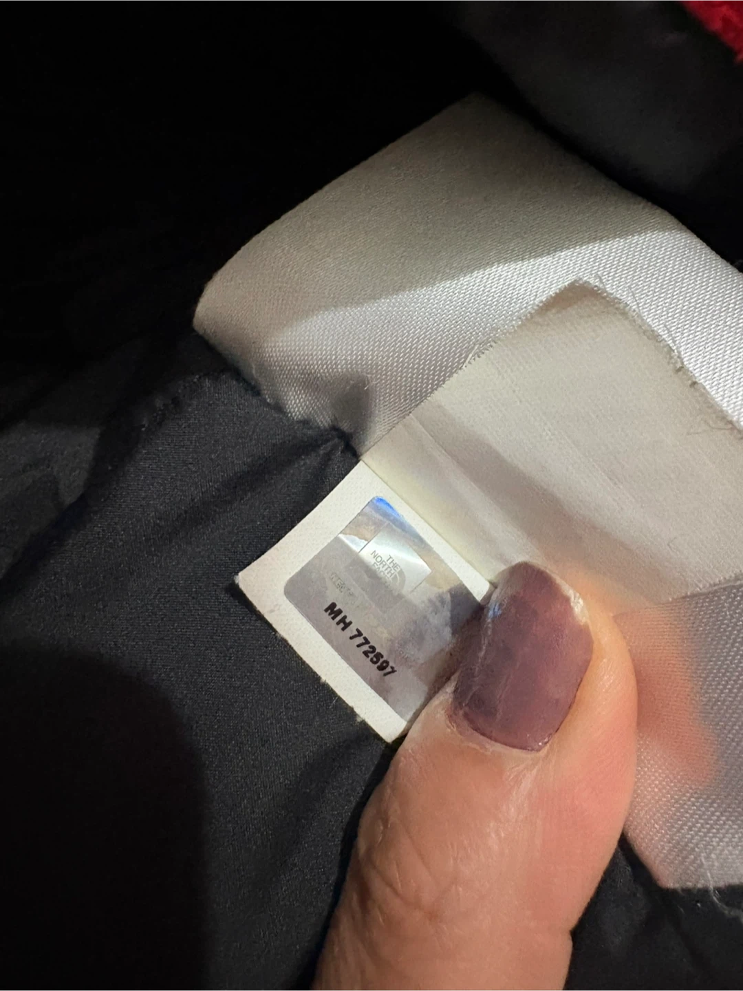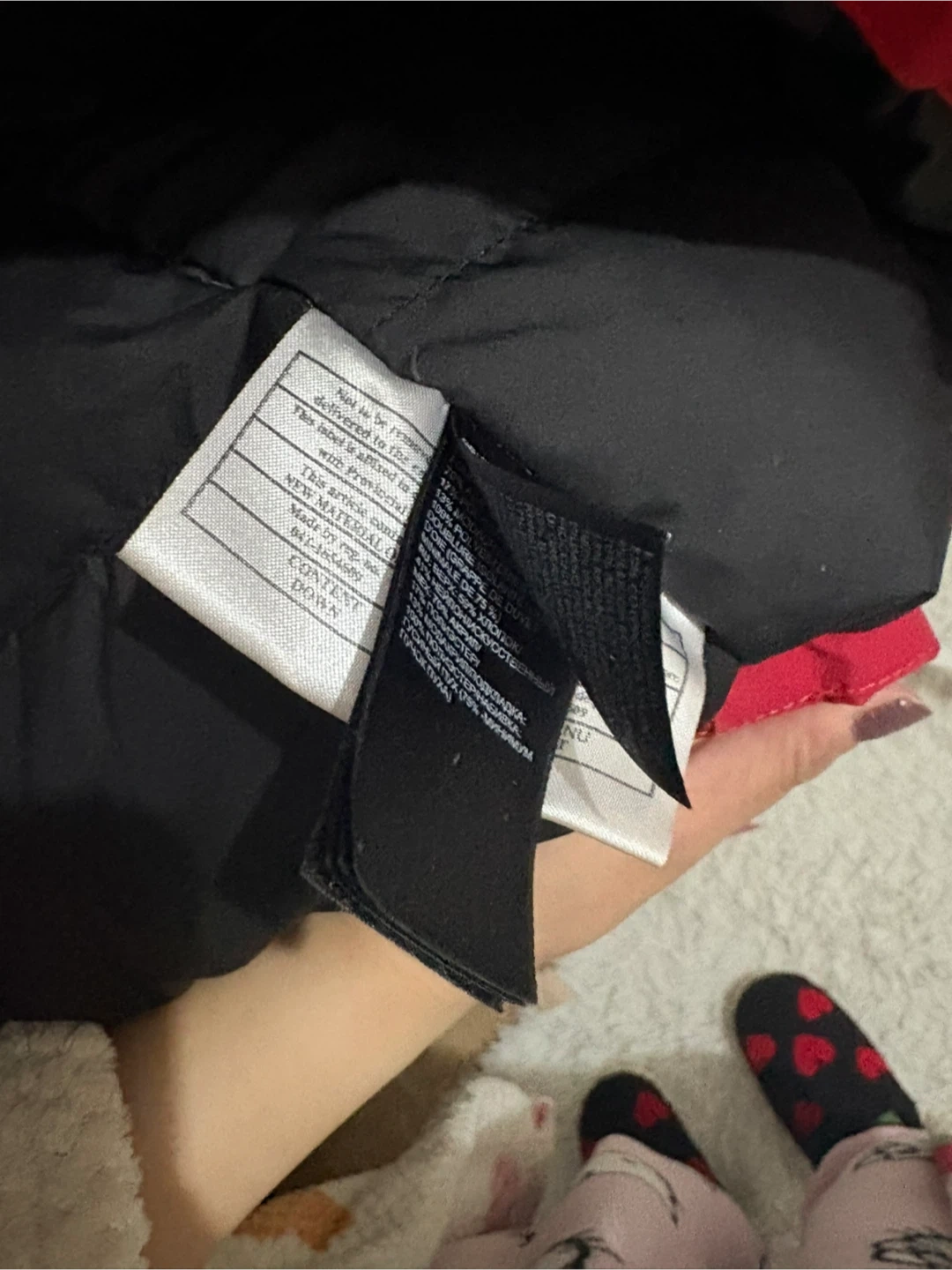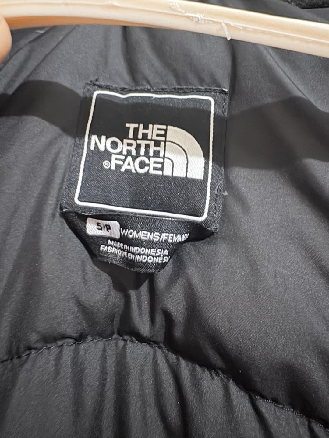 Warm red parka jacket from The North Face. It's insulated for cold weather and features a detachable fur-lined hood. Plenty of pockets for storage.