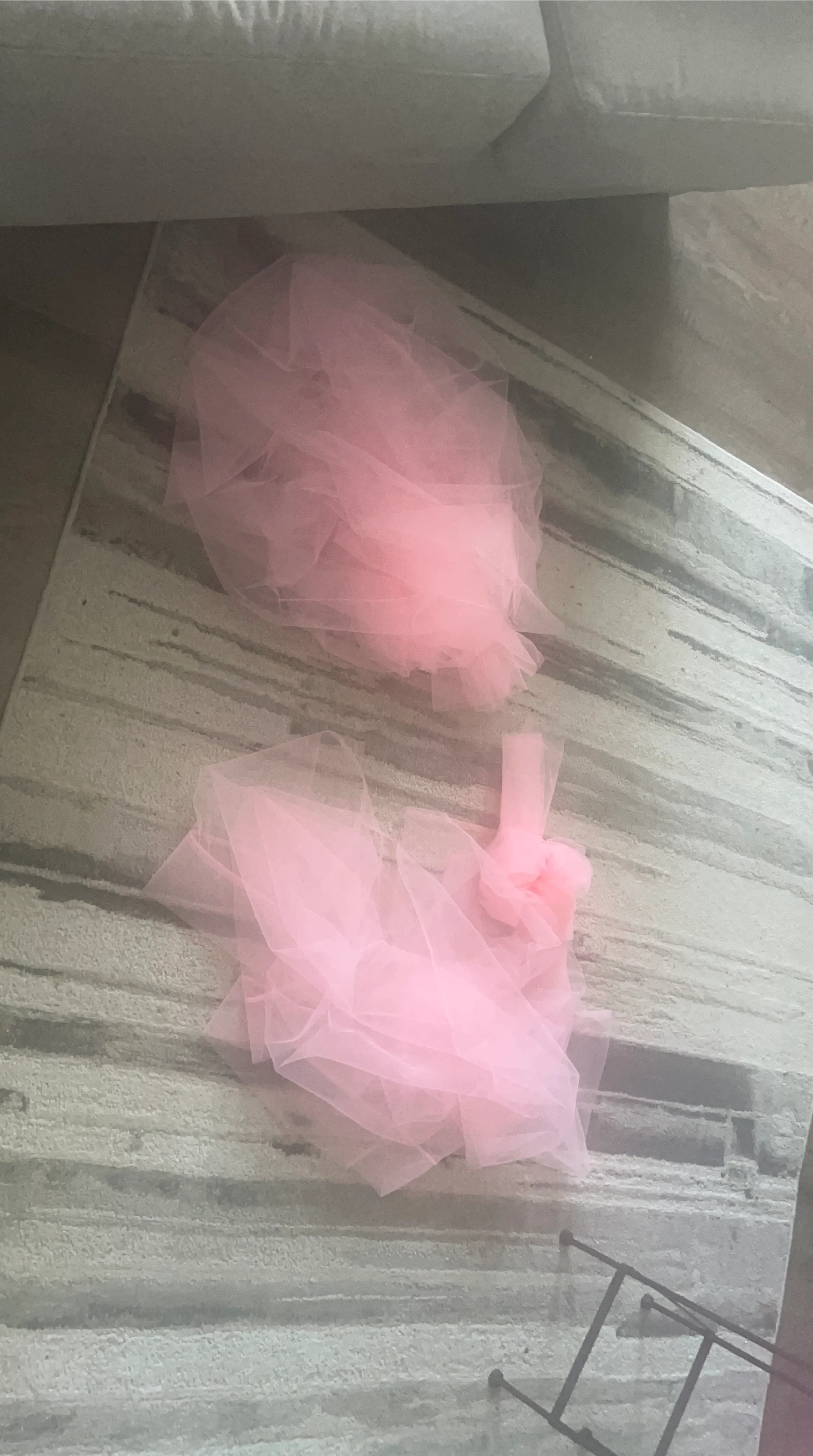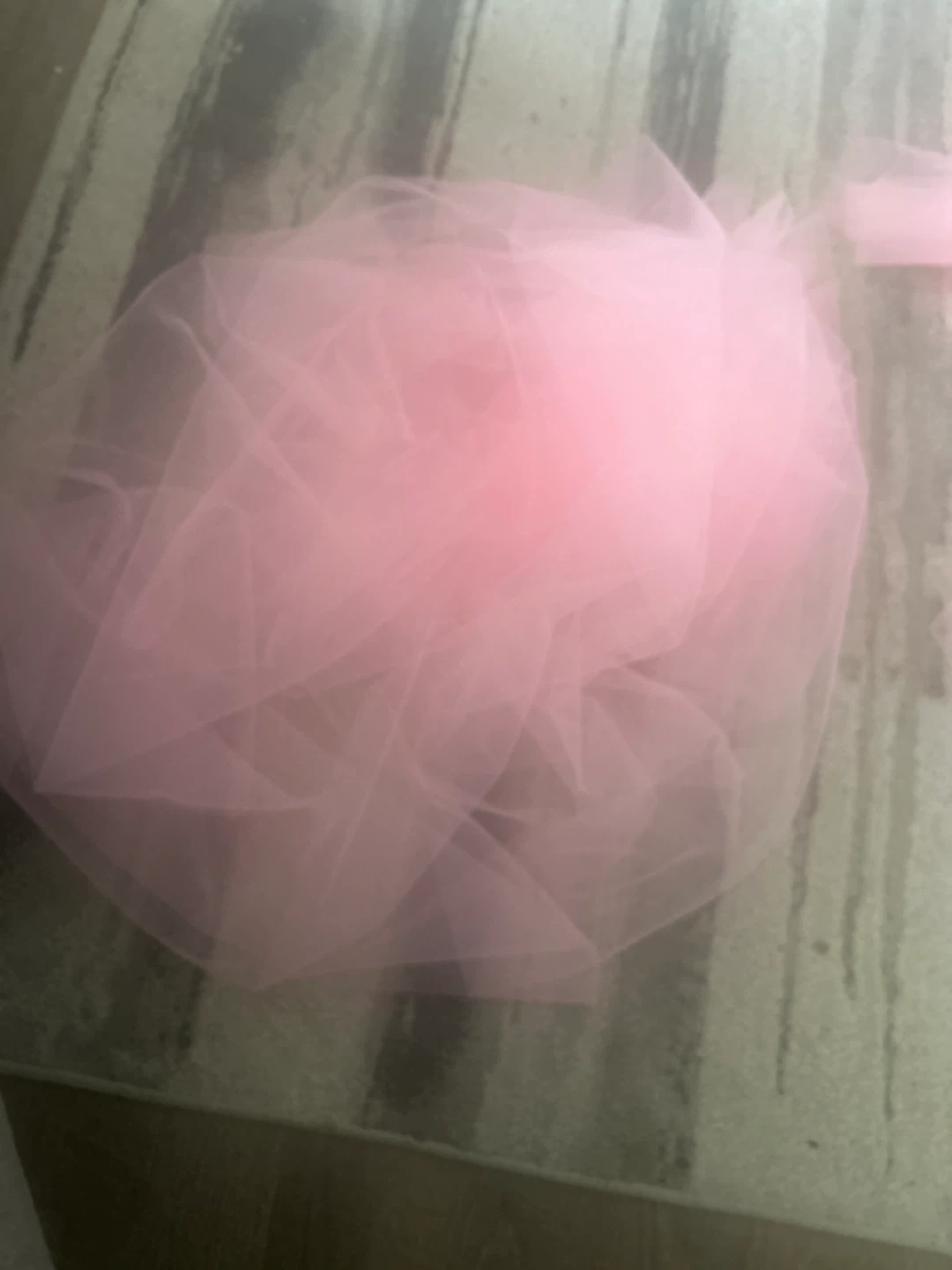 A nice piece of pink tulle fabric, perfect for crafting projects or making a tutu or window curtain. It's a lovely light pink colour and is made of polyester. Plenty of material for your next sewing adventure!