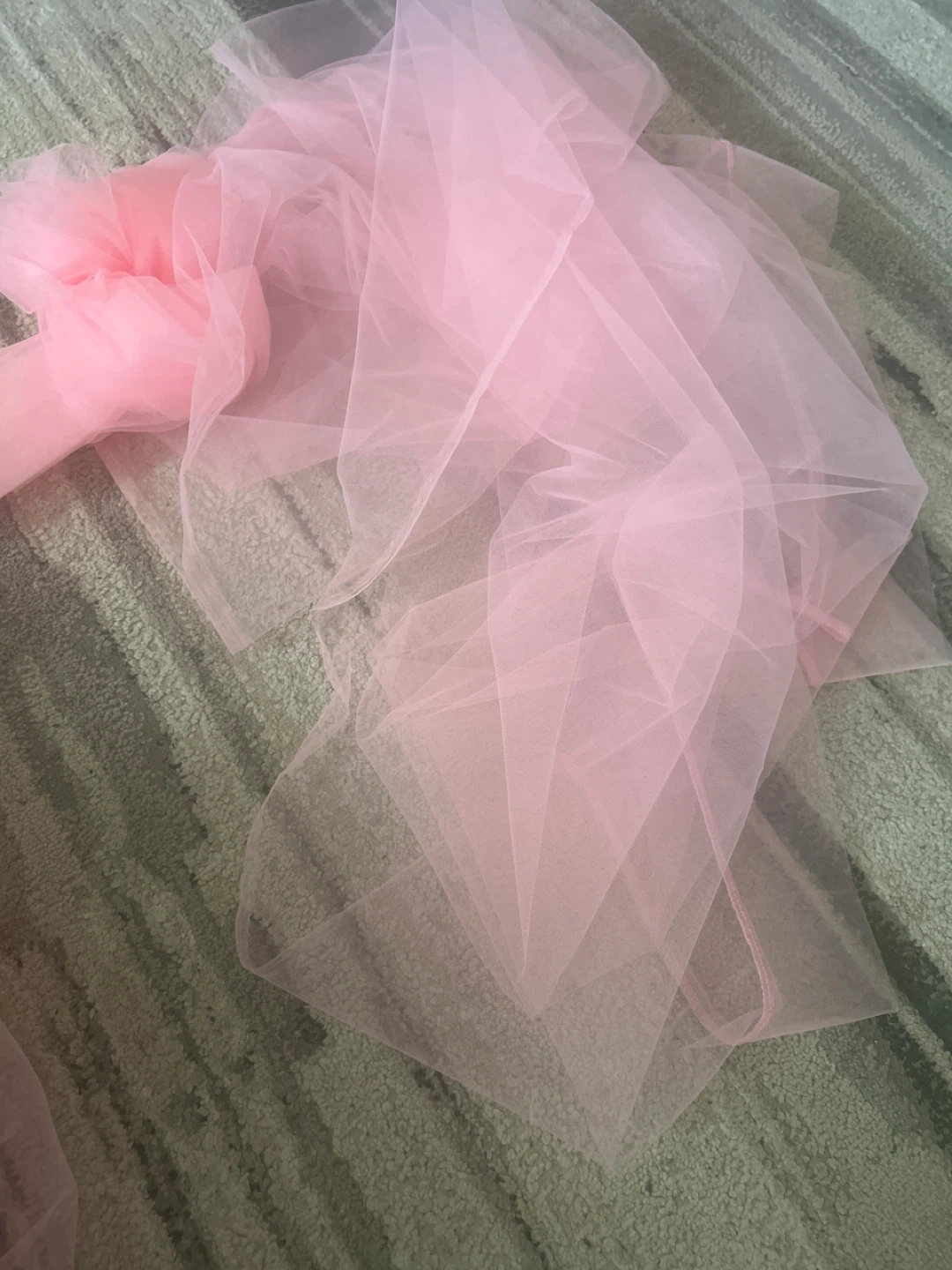 A nice piece of pink tulle fabric, perfect for crafting projects or making a tutu or window curtain. It's a lovely light pink colour and is made of polyester. Plenty of material for your next sewing adventure!