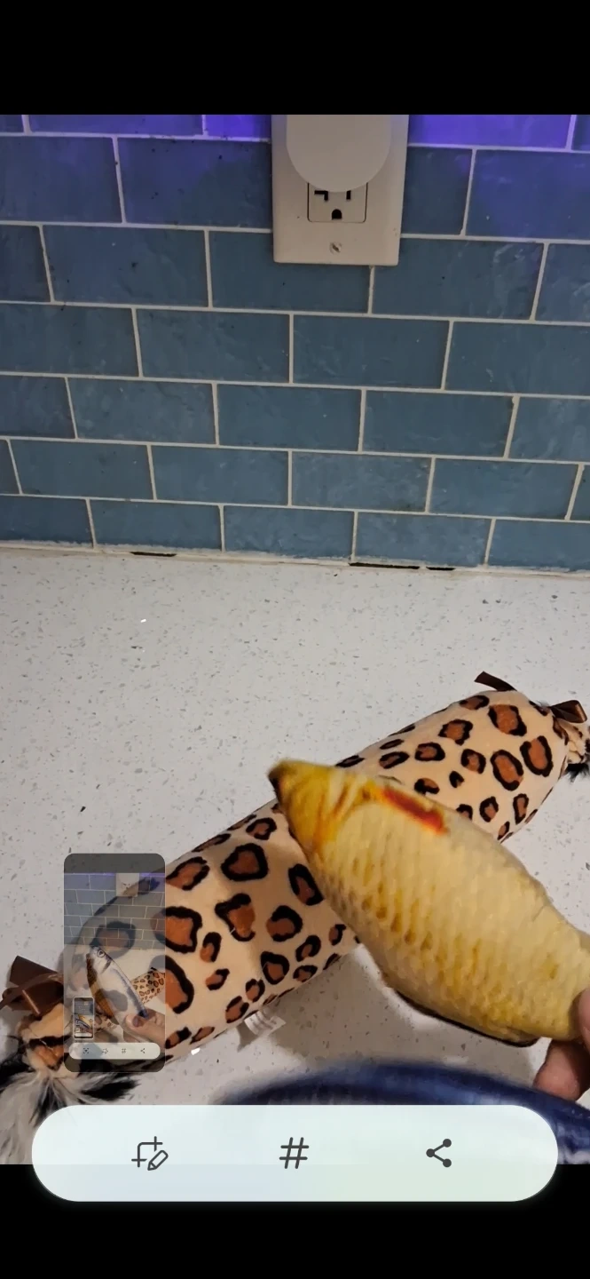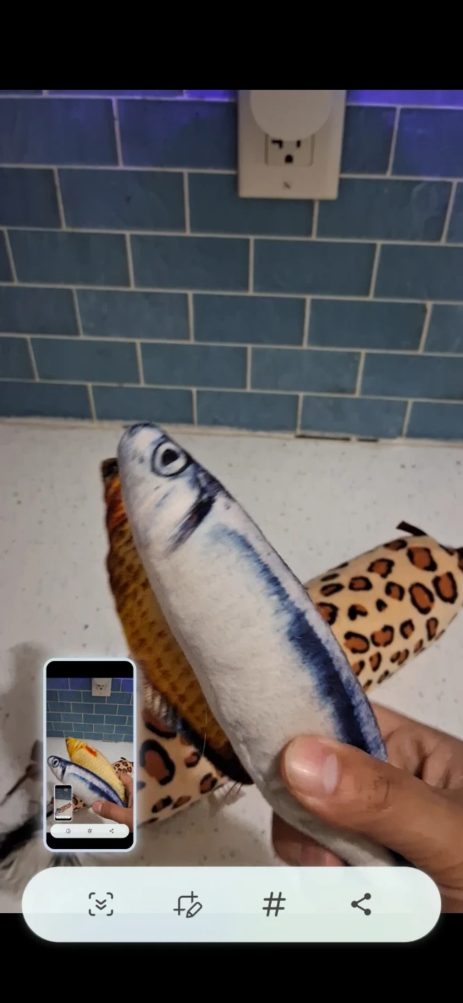 Set of three plush fish toys designed for cats. Each fish has a realistic design with vibrant colors and markings. Includes one with blue and white stripes, and one yellow with red accent. Perfect for engaging your cat's hunting instincts with durable material for playtime!