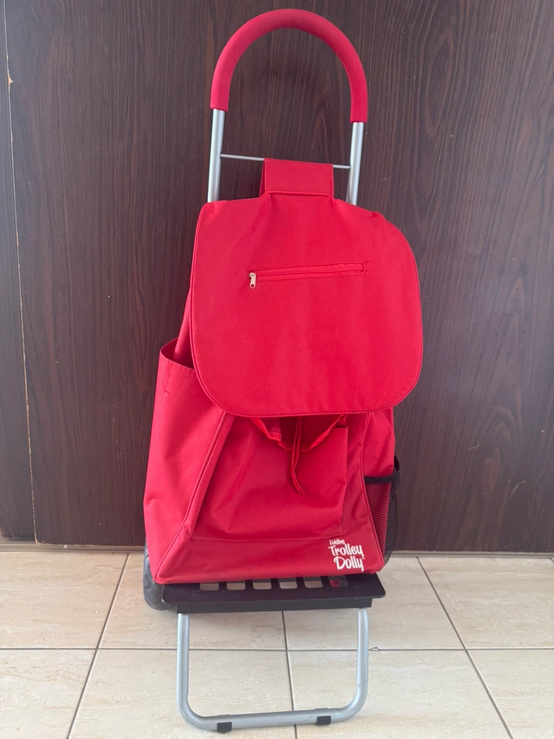 Selling Trolley Dolly Red Shopping Grocery Foldable Cart — brand new, never used. Lightweight yet sturdy design with smooth-rolling wheels, foldable frame for easy storage, and spacious bag with multiple compartments. Ideal for groceries, laundry, shopping, or daily errands.