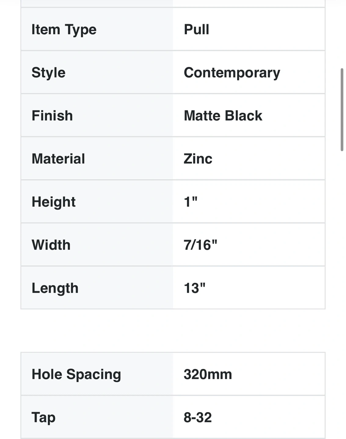 Buy & SellContemporary Matte Black Zinc Pull Handle - 13 Inch LengthContemporary Matte Black Zinc Pull Handle - 13 Inch Length$9This is a contemporary style pull handle with a matte black finish. It's made from durable zinc material. Hole spacing is 320mm.ConditionNewWHERE TO MEET6670 3rd LineView MapSELLERverifiedPeterTottenham820 reviews0 chats·0 favorites·2 viewsSEND CHAT TO SELLERHi Peter! I’m interested in your listing.Hi Peter! I’m interested in your listing.Get the Karrot app to chatSign In to chat