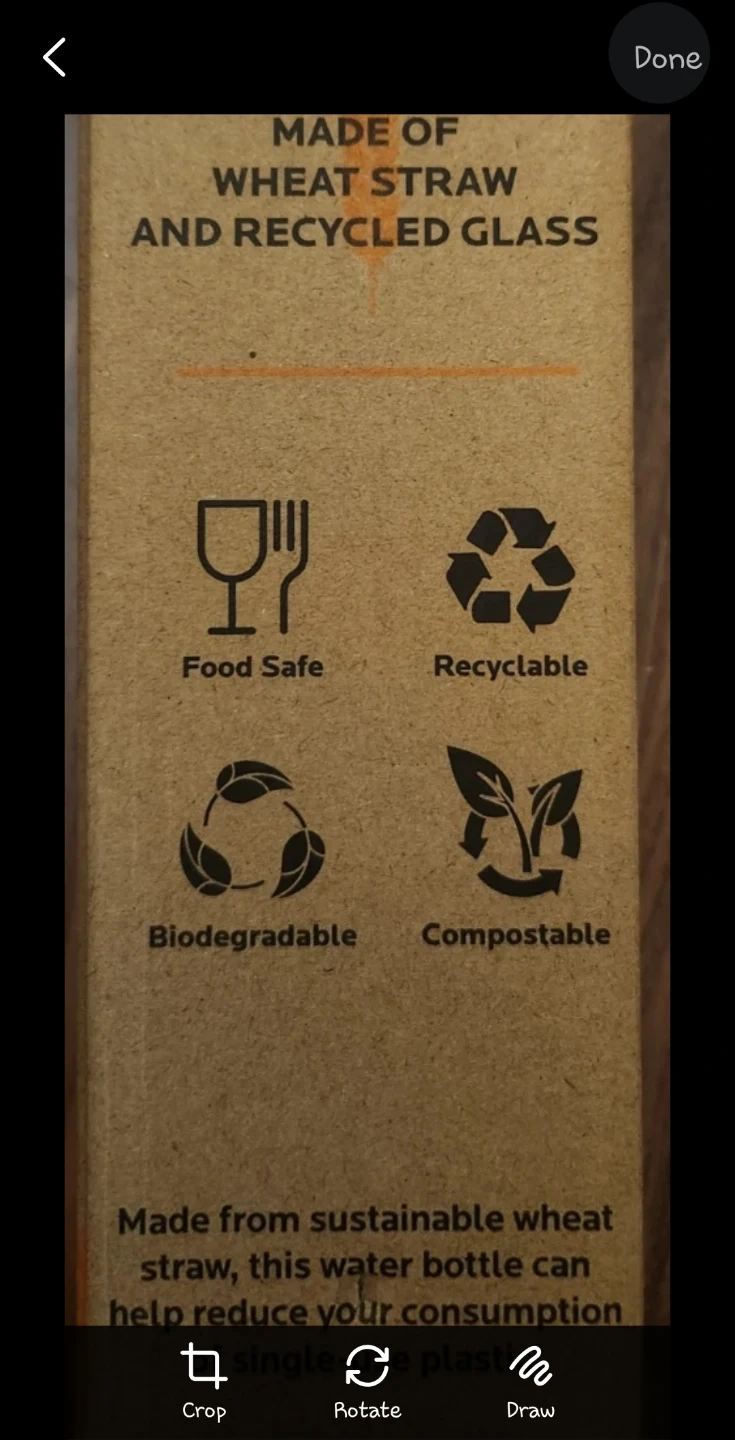 This is a reusable water bottle from La Roche-Posay. It's made of wheat straw and recycled glass. This sustainable bottle helps reduce consumption of single-use plastic!