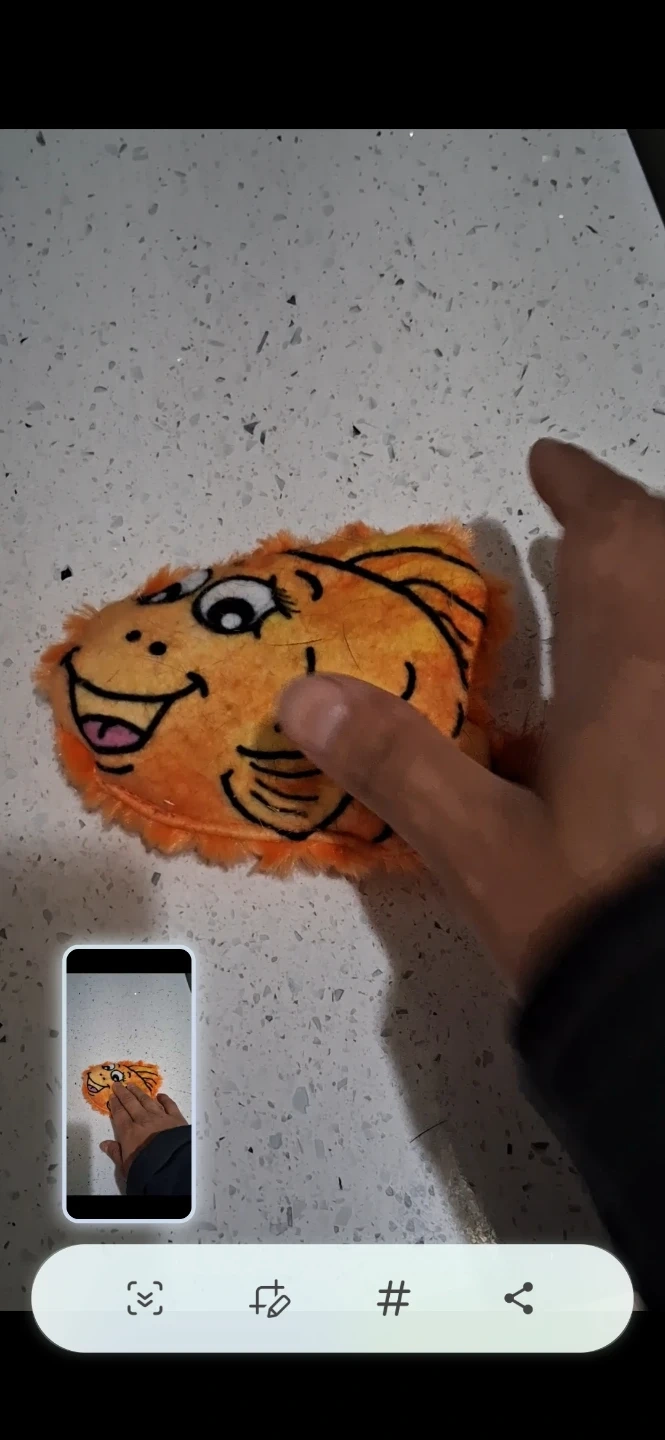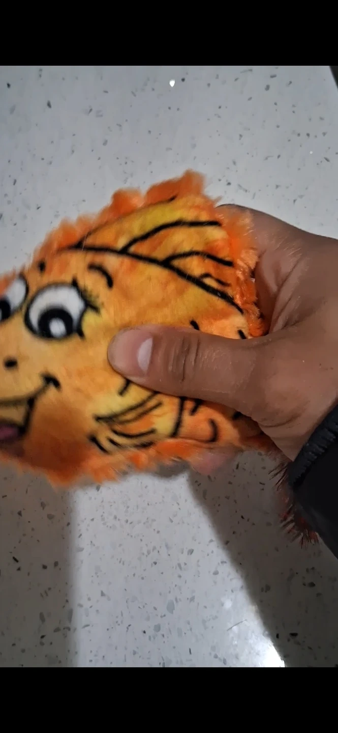 This is a cute plush toy shaped like an orange fish. The design is friendly and cartoonish. It's soft and fuzzy, filled with acrylic paper. Perfect for playtime with Cats.