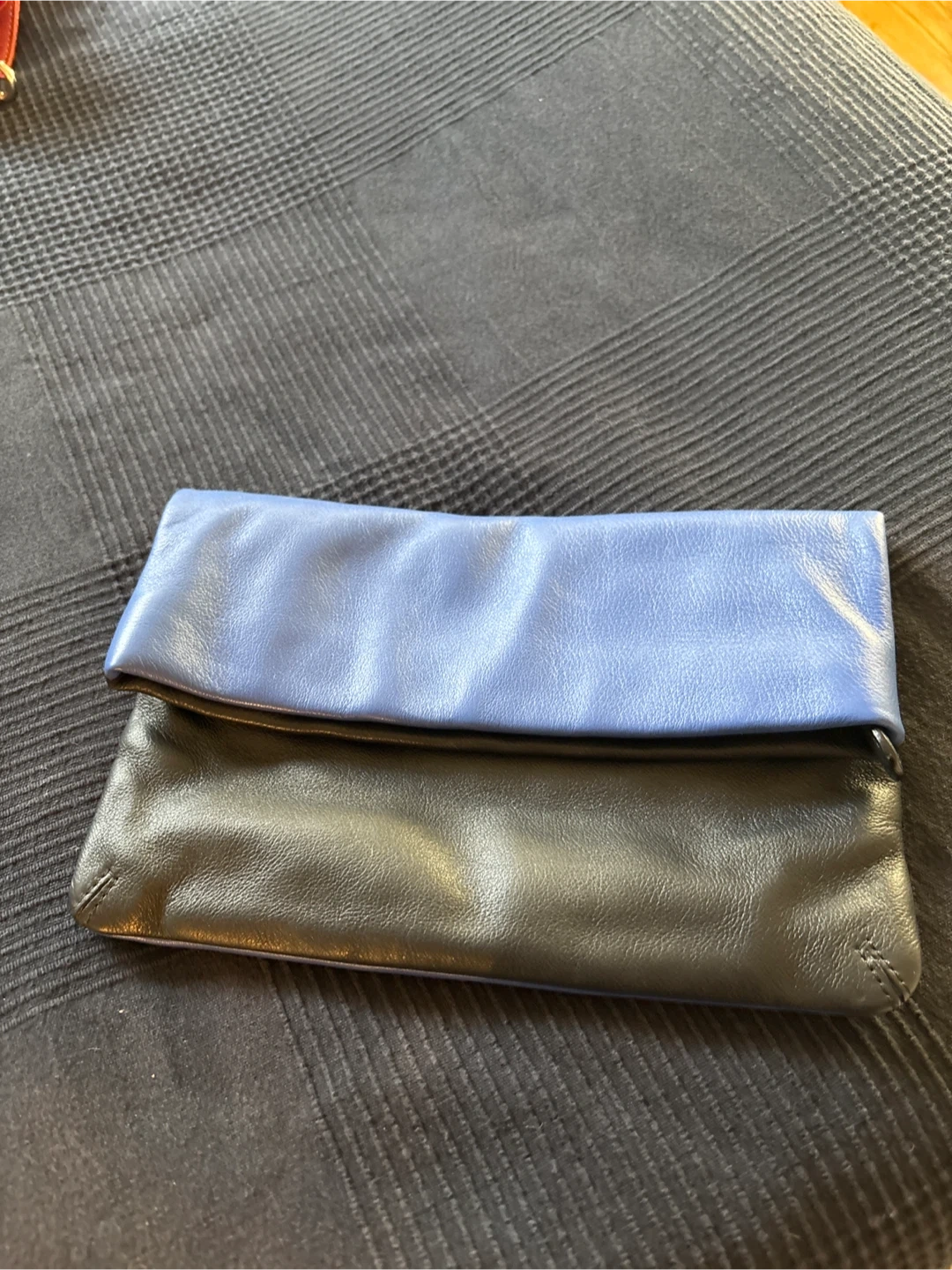 This fold-over clutch bag is made of genuine leather. It features a zippered front pocket and a patterned interior lining. It's a versatile accessory for going out!
