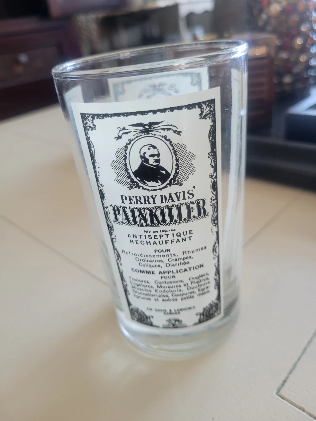 This vintage Perry Davis Painkiller glass is a unique piece of history, showcasing the brand's antique medicinal advertising. This glass is in used condition, please see the photos for details.
