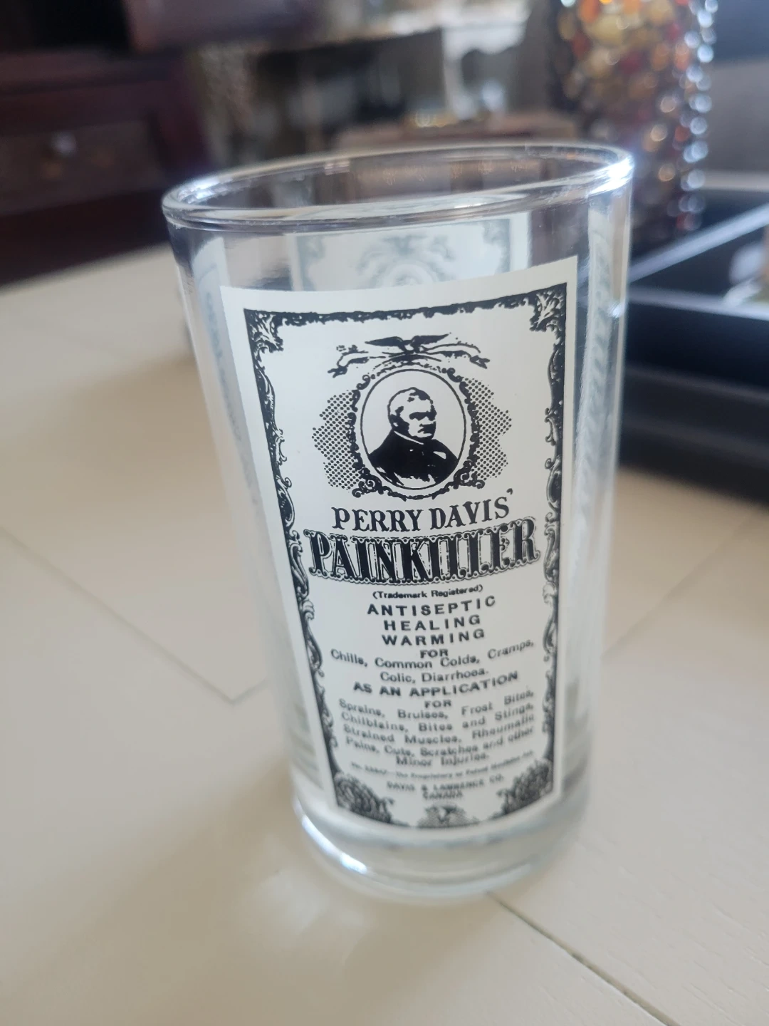 This vintage Perry Davis Painkiller glass is a unique piece of history, showcasing the brand's antique medicinal advertising. This glass is in used condition, please see the photos for details.