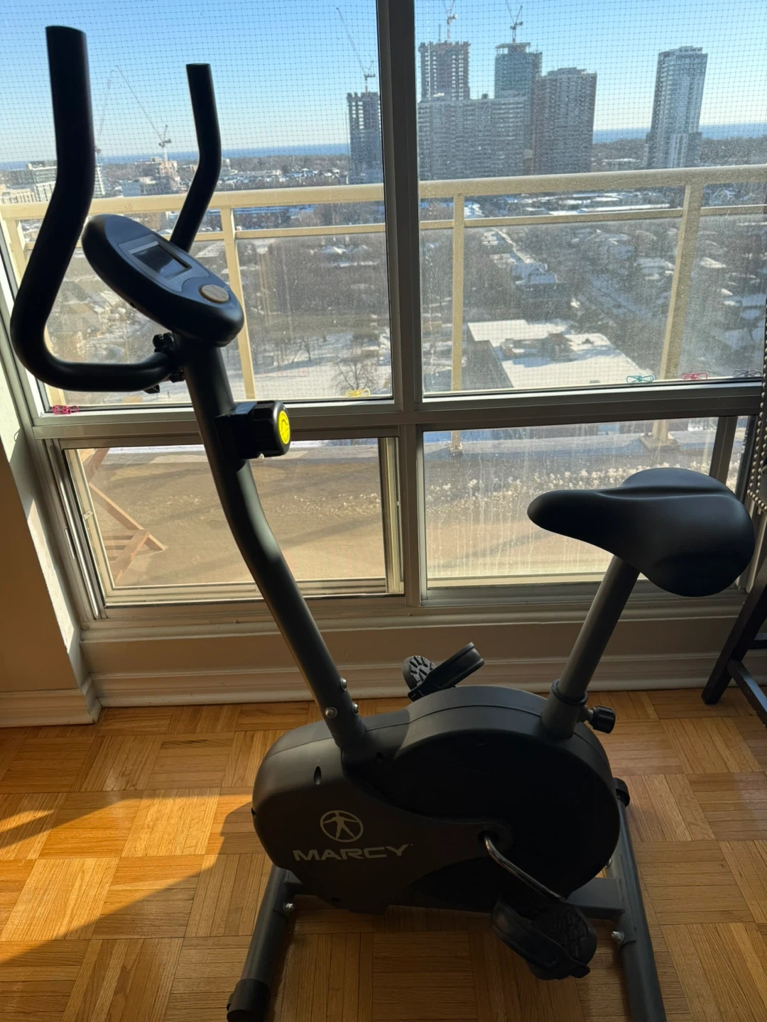 Selling Marcy Magnetic NS-714U Upright Stationary Exercise Bike. Smooth magnetic resistance, adjustable seat, LCD display to track time, distance, speed & calories. Compact design—perfect for home workouts and small spaces.
