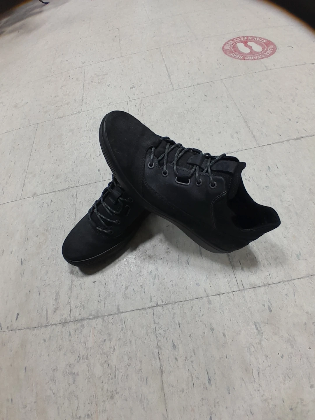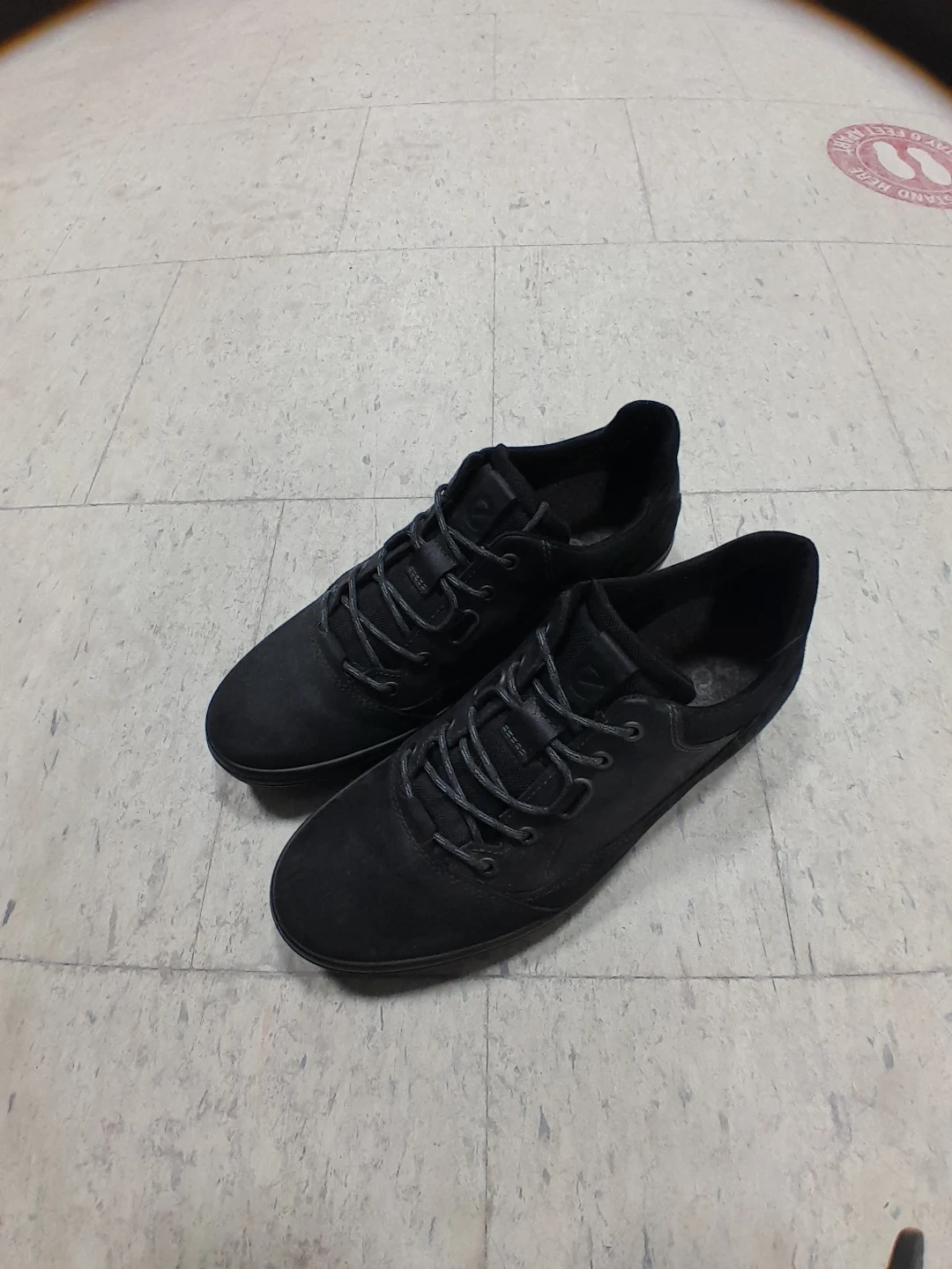 These ECCO sneakers are a stylish black suede. They feature a comfortable lace-up design. Perfect for casual wear! Men's size 10