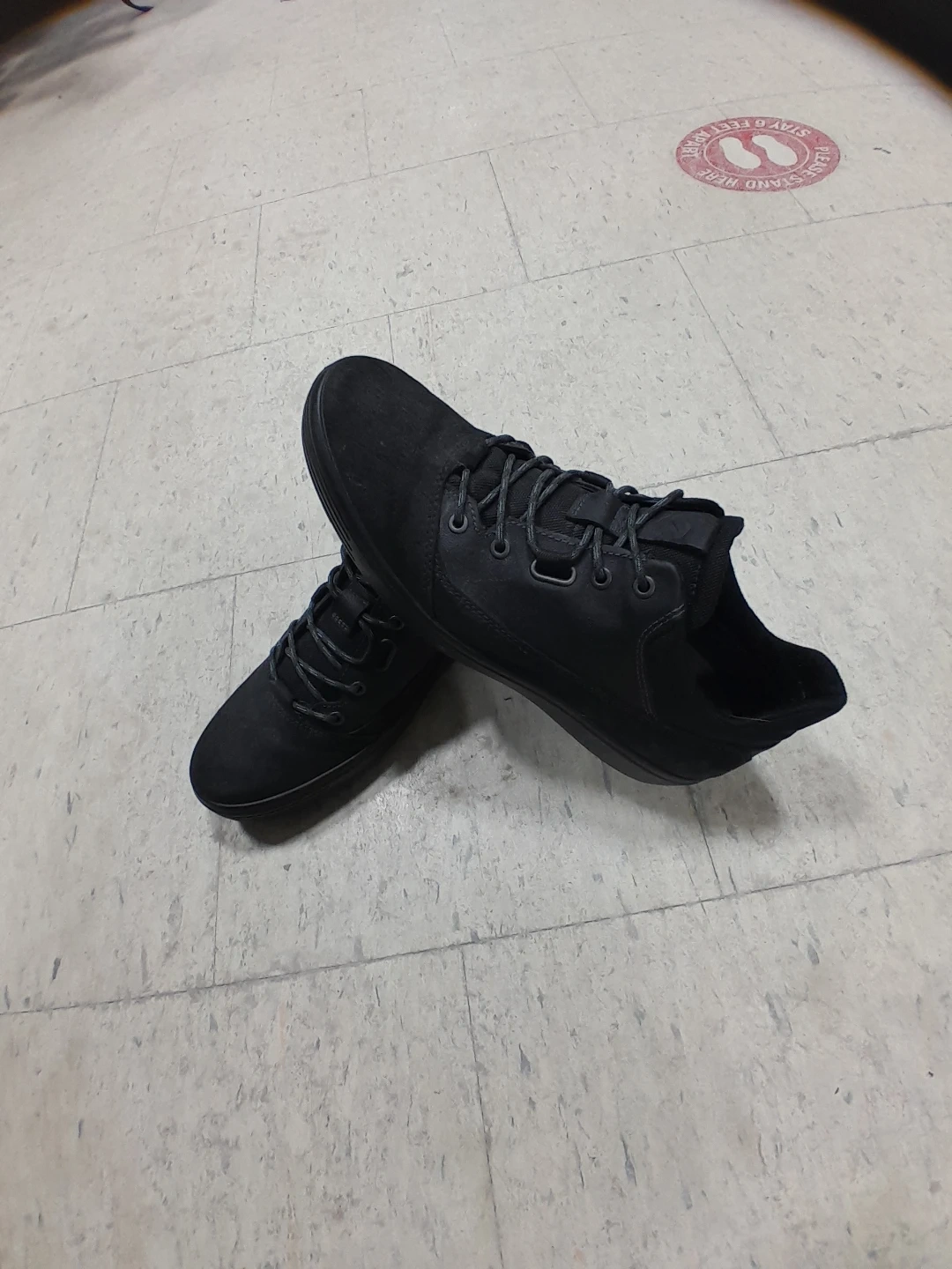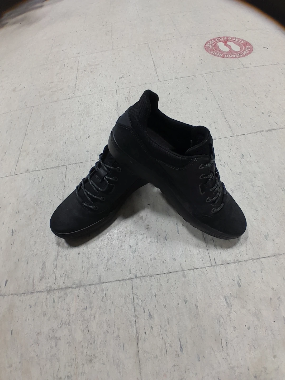 These ECCO sneakers are a stylish black suede. They feature a comfortable lace-up design. Perfect for casual wear! Men's size 10