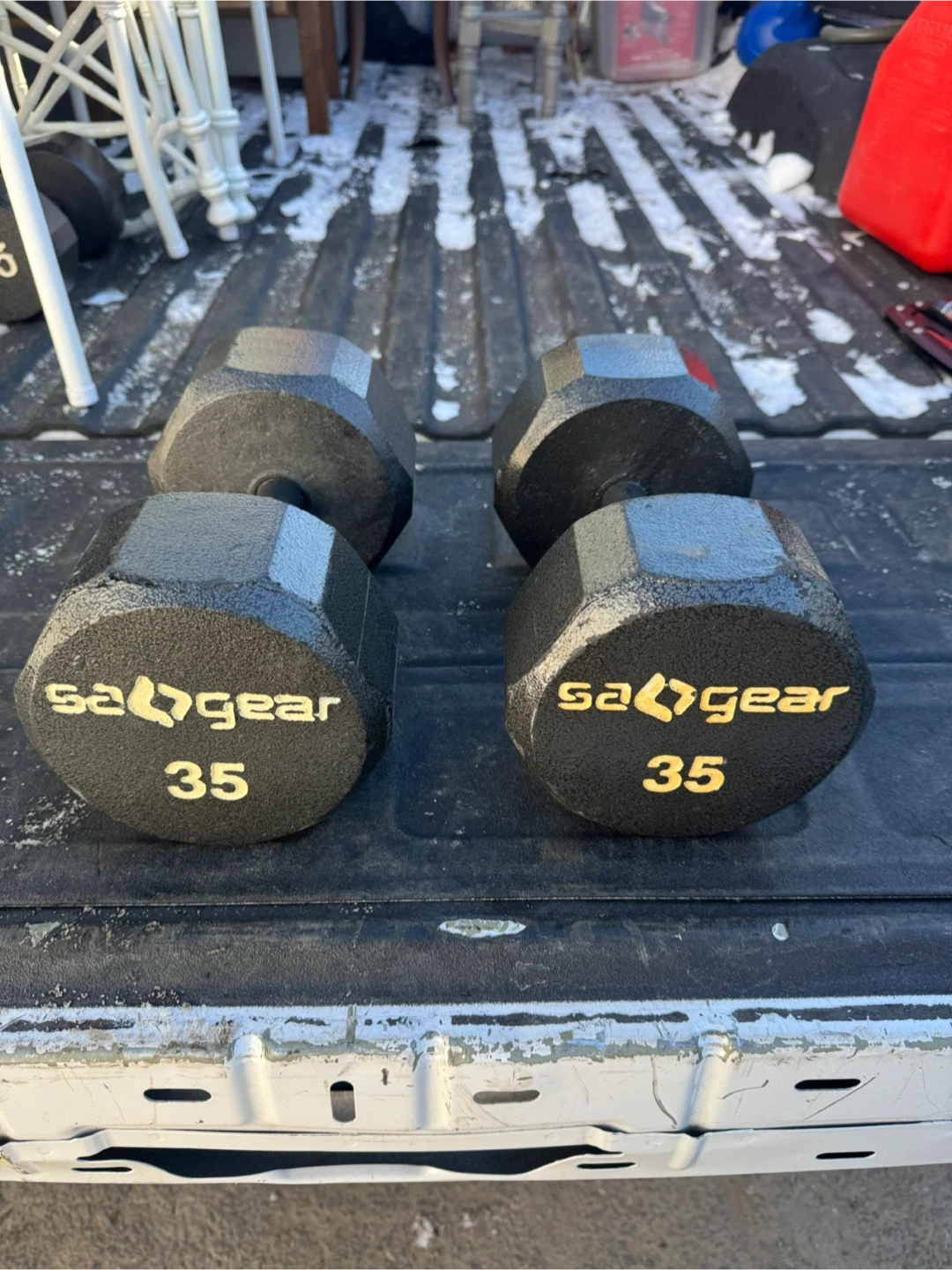 Buy & SellSA Gear 35 lb Hex Dumbbells (Set of 2)SA Gear 35 lb Hex Dumbbells (Set of 2)$70Selling a par of SA Gear 35 lb hex dumbbells. These have a textured grip and are made of cast iron. They're great for strength training at home!ConditionGoodWHERE TO MEETCheck LocationView MapSELLERverifiedPaulNorthport912 reviews0 chats·0 favorites·3 viewsSEND CHAT TO SELLERHi Paul! I’m interested in your listing.Hi Paul! I’m interested in your listing.Get the Karrot app to chatSign In to chat