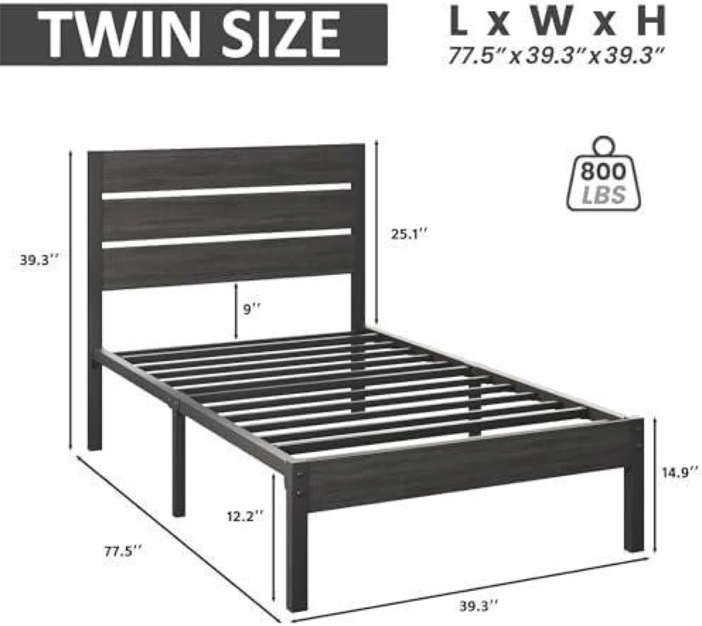 Buy & SellNEW IN BOX Twin Size Bed Frame with Headboard - Dark GreyNEW IN BOX Twin Size Bed Frame with Headboard - Dark Grey$118This is a dark grey twin size bed frame with a slatted headboard. It's made of metal and wood. Assembly manual is included.ConditionNewWHERE TO MEETMeet up areaView MapSELLERverifiedSamGreenbrook32727 reviews3 chats·6 favorites·111 viewsSEND CHAT TO SELLERHi Sam! I’m interested in your listing.Hi Sam! I’m interested in your listing.Get the Karrot app to chatSign In to chat
