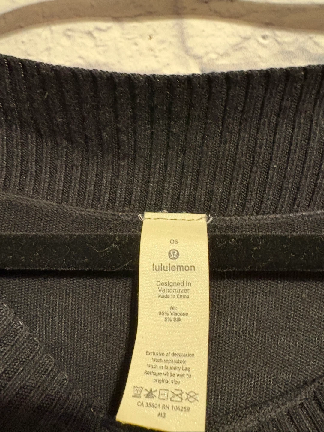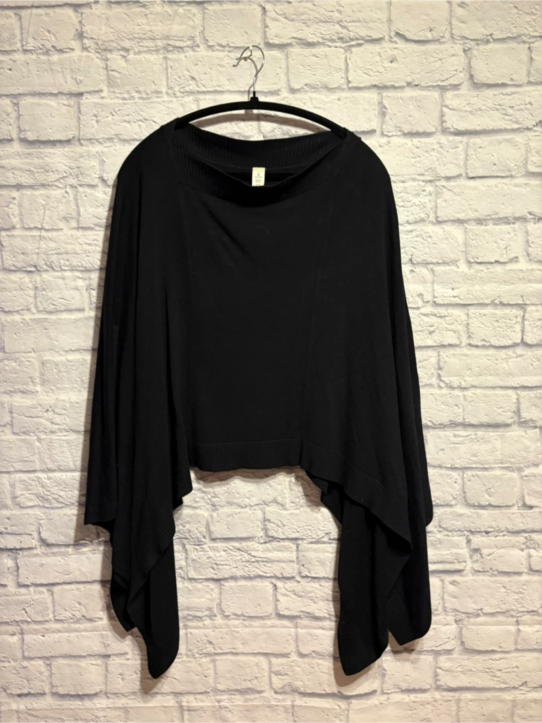 This Lululemon poncho sweater is one size fits all. It's made with a blend of 95% viscose and 5% silk. This piece is designed in Vancouver and made in China. It's a great layering piece for cooler days! Overall great condition, some light pilling. Pick up only.