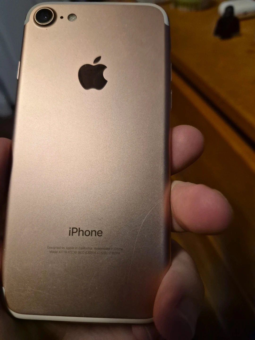 This is an Apple iPhone 7 in Rose Gold. It's the A1778 model. The phone has a standard home button and rear camera. It has 64GB of storage and has a screen protector. I got a new Samsung galaxy 25FE and dont need it anymore. It'll come with a green back case to protect it. Good for a first phone I liked it and can ship for an extra cost. It is unlocked and will be factory reset