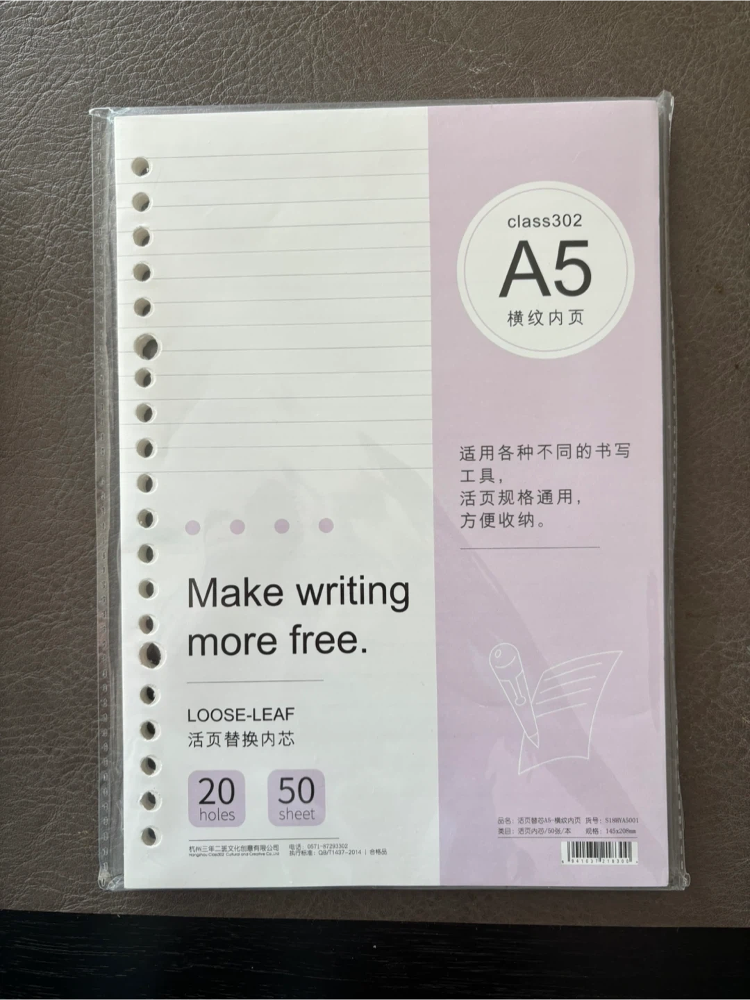 This is a pack of 50 sheets of A5 lined loose-leaf paper. The paper is suitable for various writing tools and binders. It's designed for easy organization and storage.