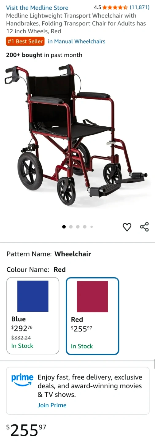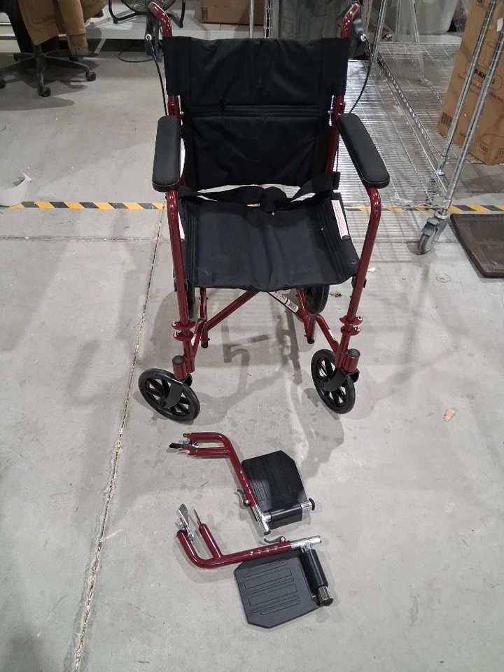 I'm offering a like new Medline Lightweight Transport Wheelchair, perfect for adults with its 12-inch wheels and handbrakes. This folding transport chair is lightweight and durable, featuring a sturdy aluminum frame with a 300 lb weight capacity.