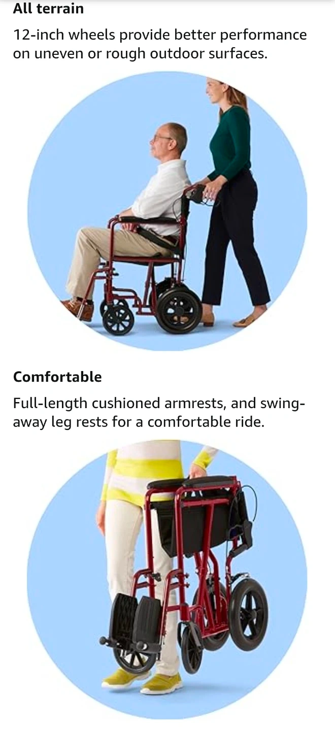 * Enhanced safety features: Easy-to-squeeze hand brakes and rear-wheel manual locking brakes allow for safe and secure transfers