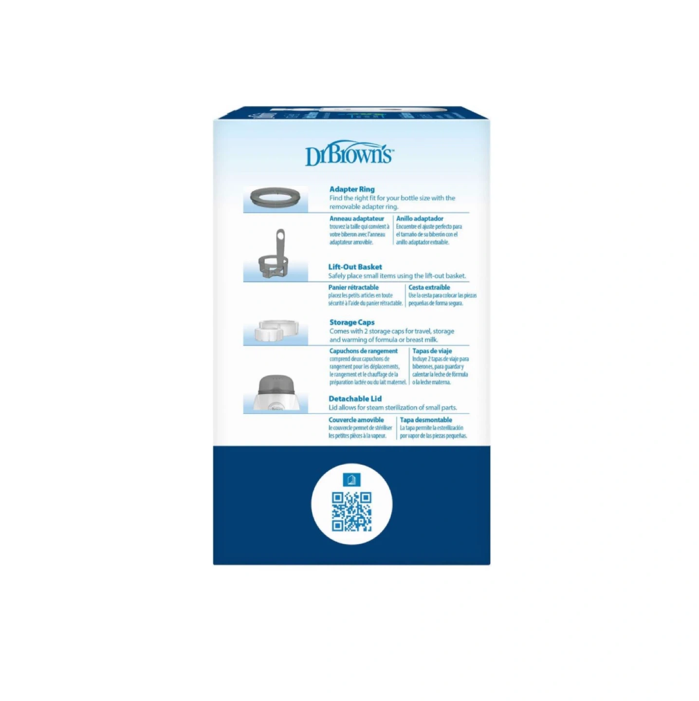 Quickly and safely warm baby bottles and food jars with Dr. Brown’s™ Insta-Feed™ Bottle Warmer and Sterilizer! This baby bottle warmer is compact to minimize clutter and warms in as little as 80 seconds