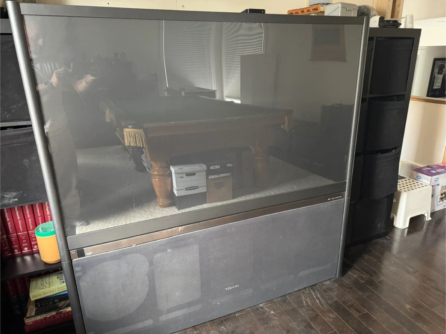 65" Toshiba television with SRS WOW TheaterWide HD technology. This large screen TV offers an immersive viewing experience. Built-in speakers provide clear audio.