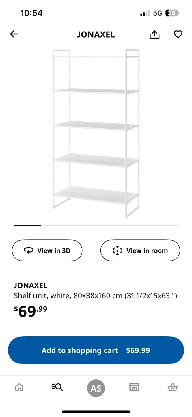 Buy & SellIKEA white metal Shelf UnitIKEA white metal Shelf Unit$45White IKEA JONAXEL shelf unit measuring 80x38x160 cm. Perfect for organizing your space!ConditionLike newWHERE TO MEETFairviewView MapSELLERverifiedAnnaCentral Vancouver1349 reviews0 chats·2 favorites·17 viewsSEND CHAT TO SELLERHi Anna! I’m interested in your listing.Hi Anna! I’m interested in your listing.Get the Karrot app to chatSign In to chat